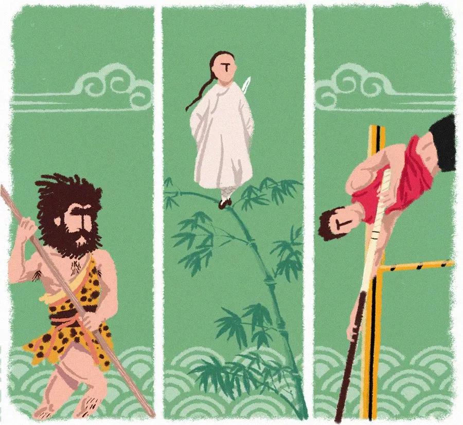 20世纪初,撑杆跳仍在使用硬木杆,男子世界纪录是3米多;之后改用竹竿,世界纪录突破4米——这是使