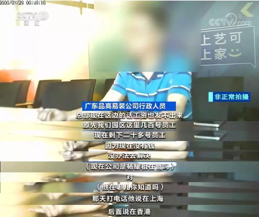 广东品高易装公司前员工熊女士表示, 每个月光业主客户补贴返款就需要1400万,17年年底投资开始失利了,所以就导致资金链陆陆续续断掉了,导致工资发不出来。