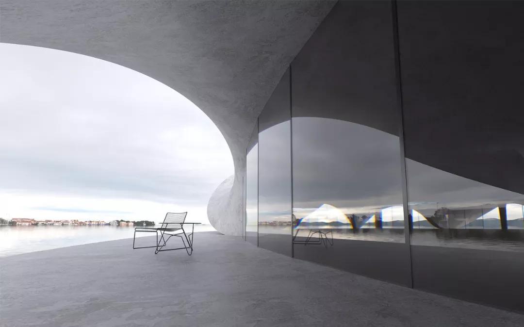 画廊坐落在一个小岛上,该小岛通过将建筑与主要土地相连的路径进入。