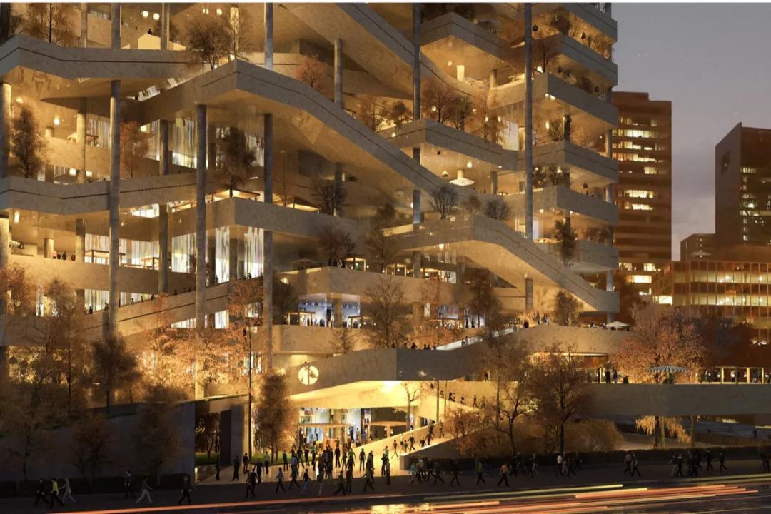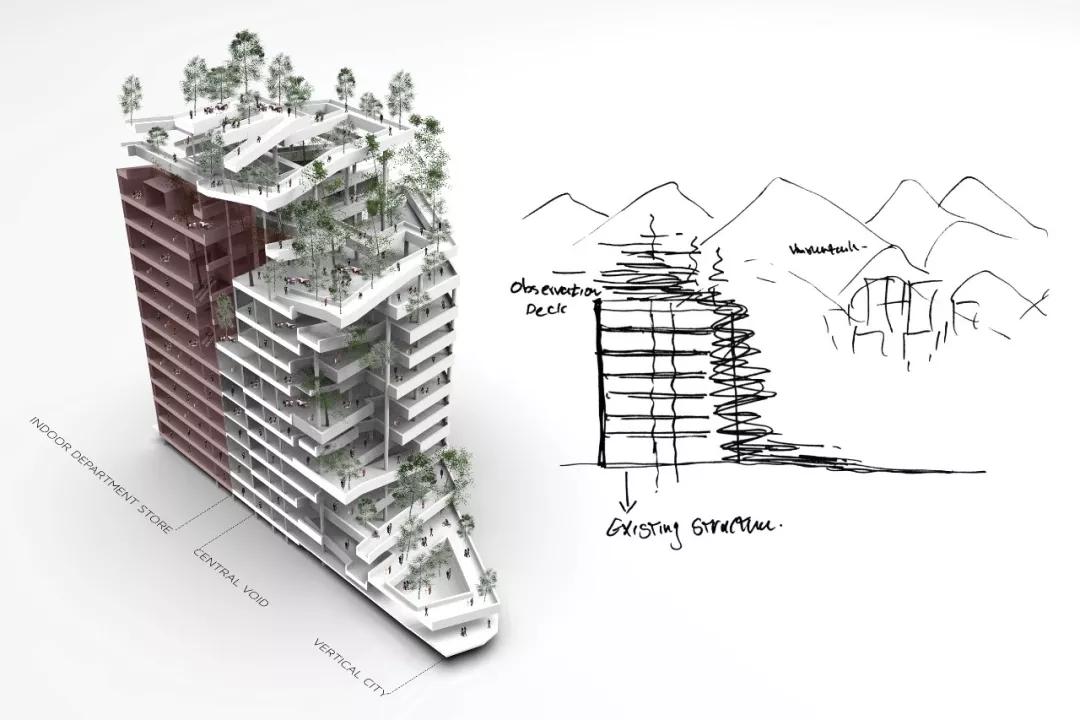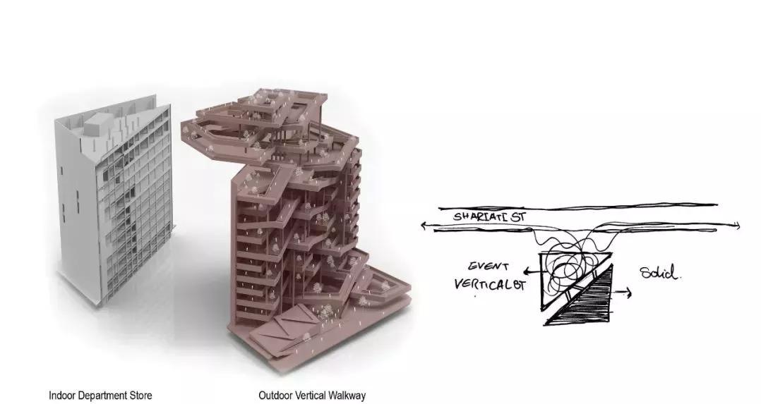 将建筑的性能从拥挤的购物中心改变为垂直的街道,主立面向公共空间开放,并为建筑创造了新的视界通道,达至