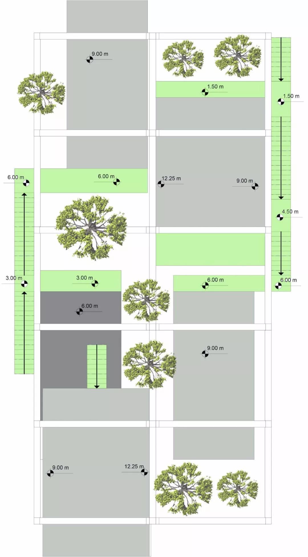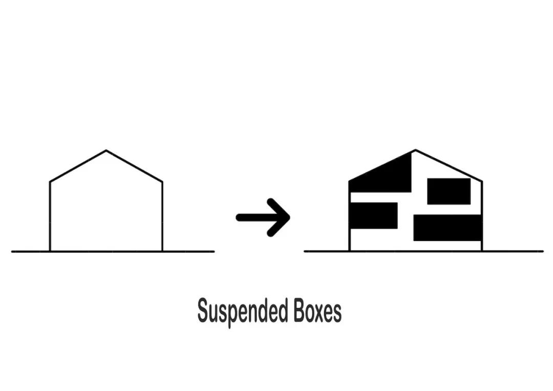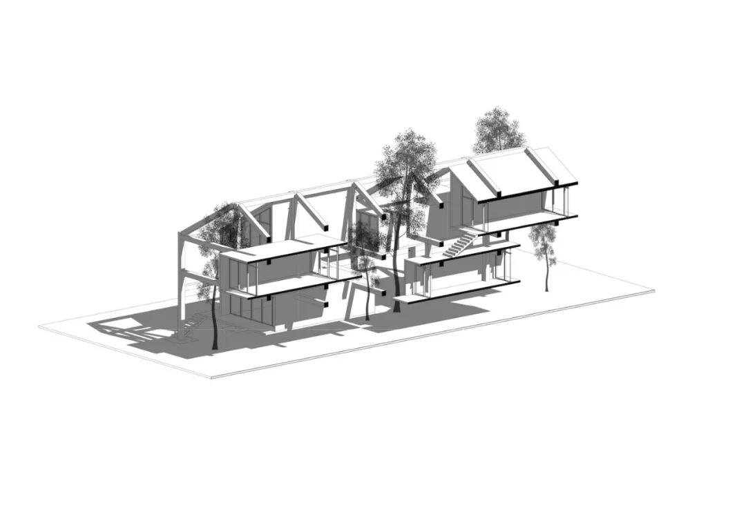 这些盒子彼此移开,为树木的生长创造了空隙,这种交互作用一直持续到建筑物的整个生命周期。