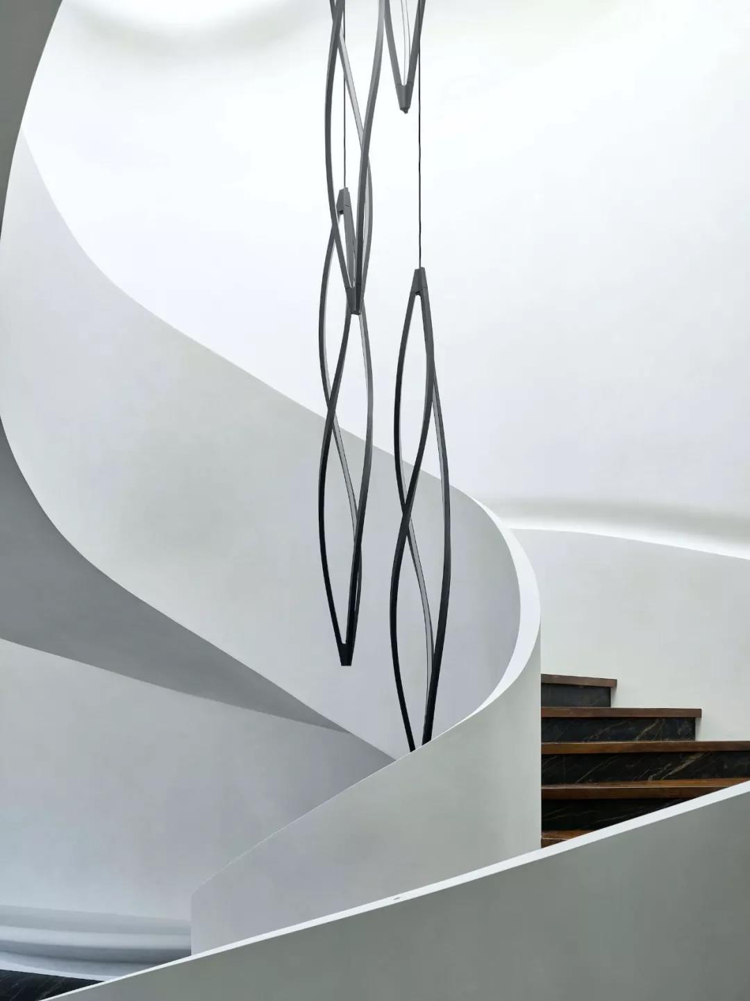 柔性模具技术和精密设计的混凝土砖构成了该“麻花”混凝土卷墙的结构。四米高的玻璃窗在12个拱形之间,这些