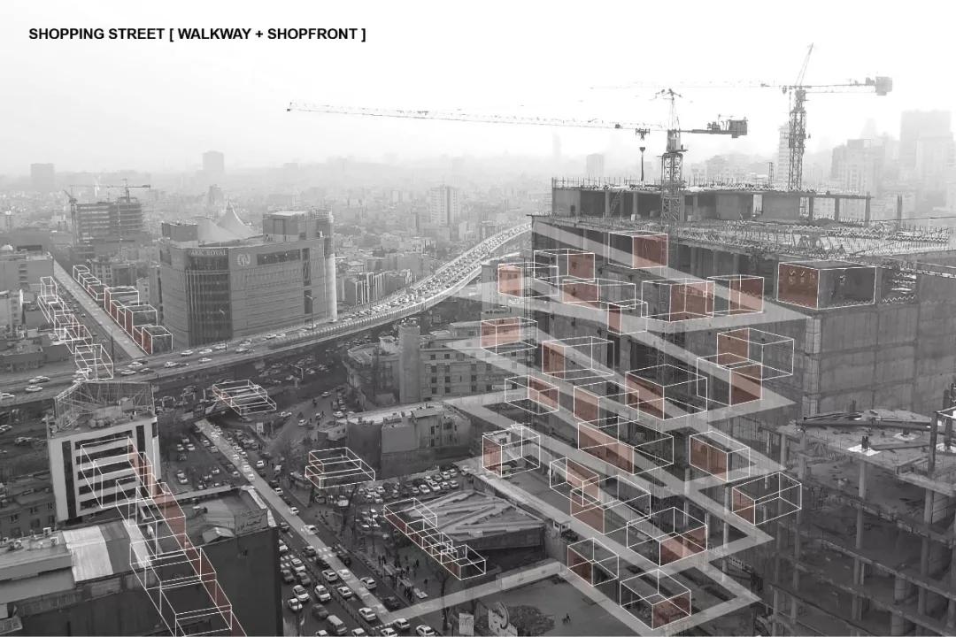 该项目位于伊朗德黑兰的核心商业街区Shariati大街,建筑原为一栋九层高商业综合体,由德黑兰建筑设计工作室