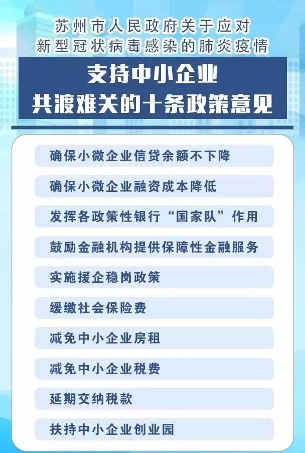 2月2日晚,苏州市印发《关于应对新型冠状病毒感染的肺炎疫情支持中小企业共渡难关的十条政策意见》(简称“苏十条”),支持中小企业应对新型冠状病毒感染的肺炎疫情。