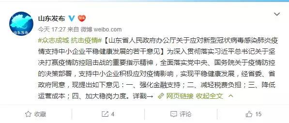 2月4日,为支持中小企业平稳发展,山东省人民政府办公厅出台《山东省人民政府办公厅关于应对新型冠状病毒感染肺炎疫情支持中小企业平稳健康发展的若千意见》(鲁政办发〔2020〕4号)(以下简称“《意见》”)。