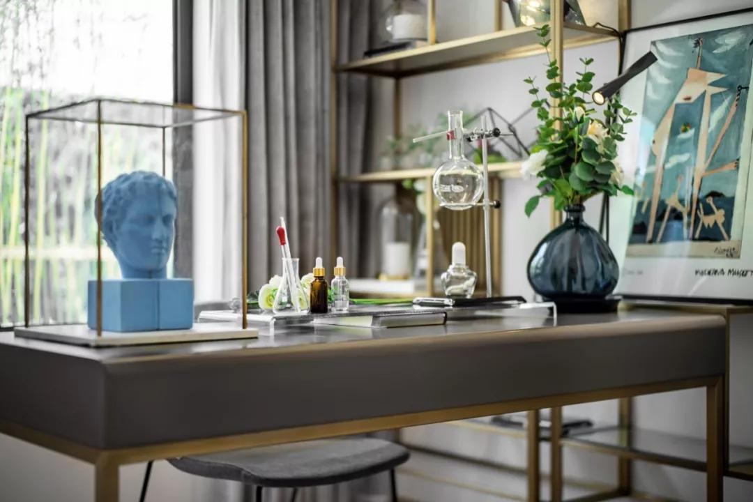 书房内弥漫着熟识的味道,清香淡雅;钟爱的乐曲萦绕在耳畔,清柔如水。微风过处,暗香盈动,仿佛渺茫的歌声似的。设计师精心营造出涵括听觉、嗅觉、视觉并带有触感的空间,沉浸其中,仿佛是一个诗意绵长的梦境。这梦历经时光的浸染,逐渐丰盈,始终呈现的是我们对生活的从容与热爱。我们热爱一切的美好,以美好的热爱为基础的活着,恰到好处,因为这是对自我存在的极致的尊重。