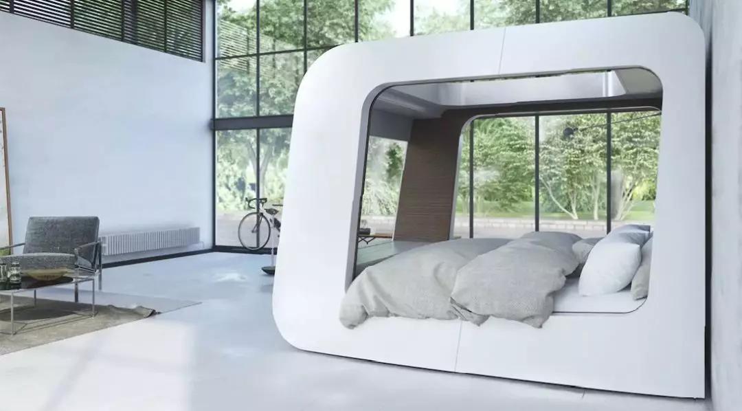 床的外部结构,由一种叫做 “Adamantx” 的新复合材料打造而成,而内部则以木材和皮革或织物加以装饰,营造出一个美观舒适的睡眠空间。