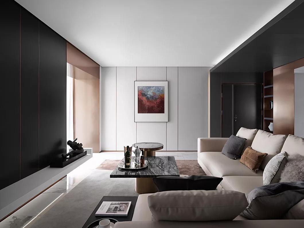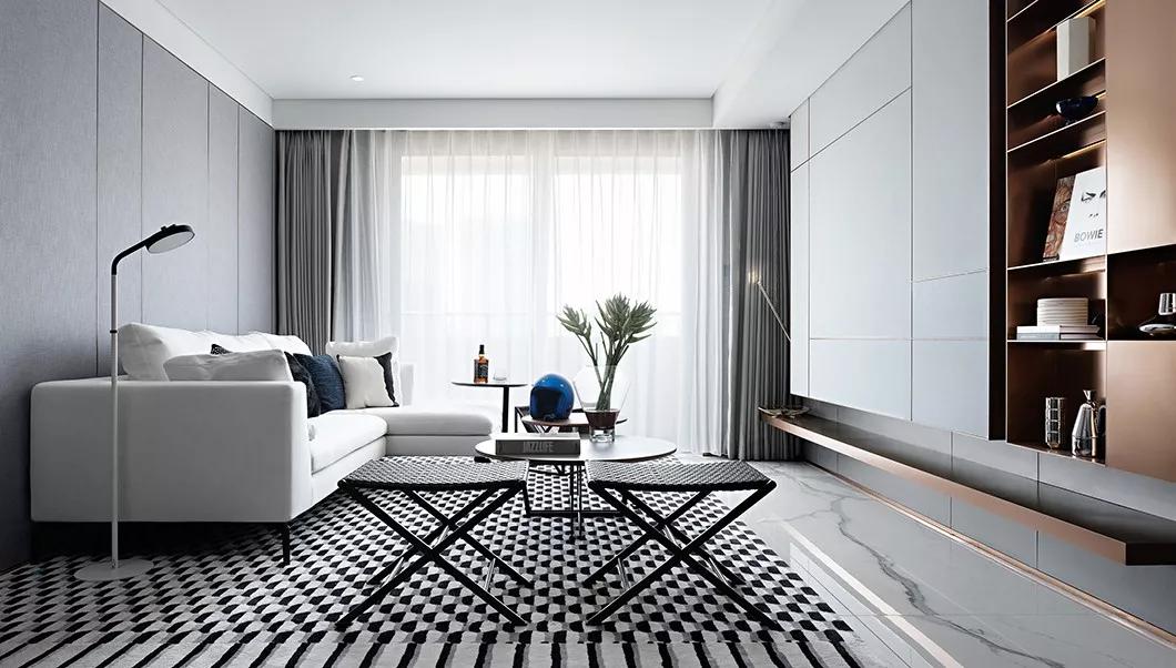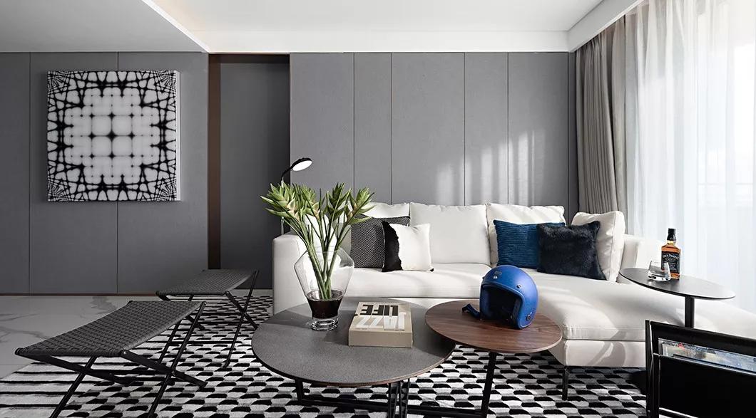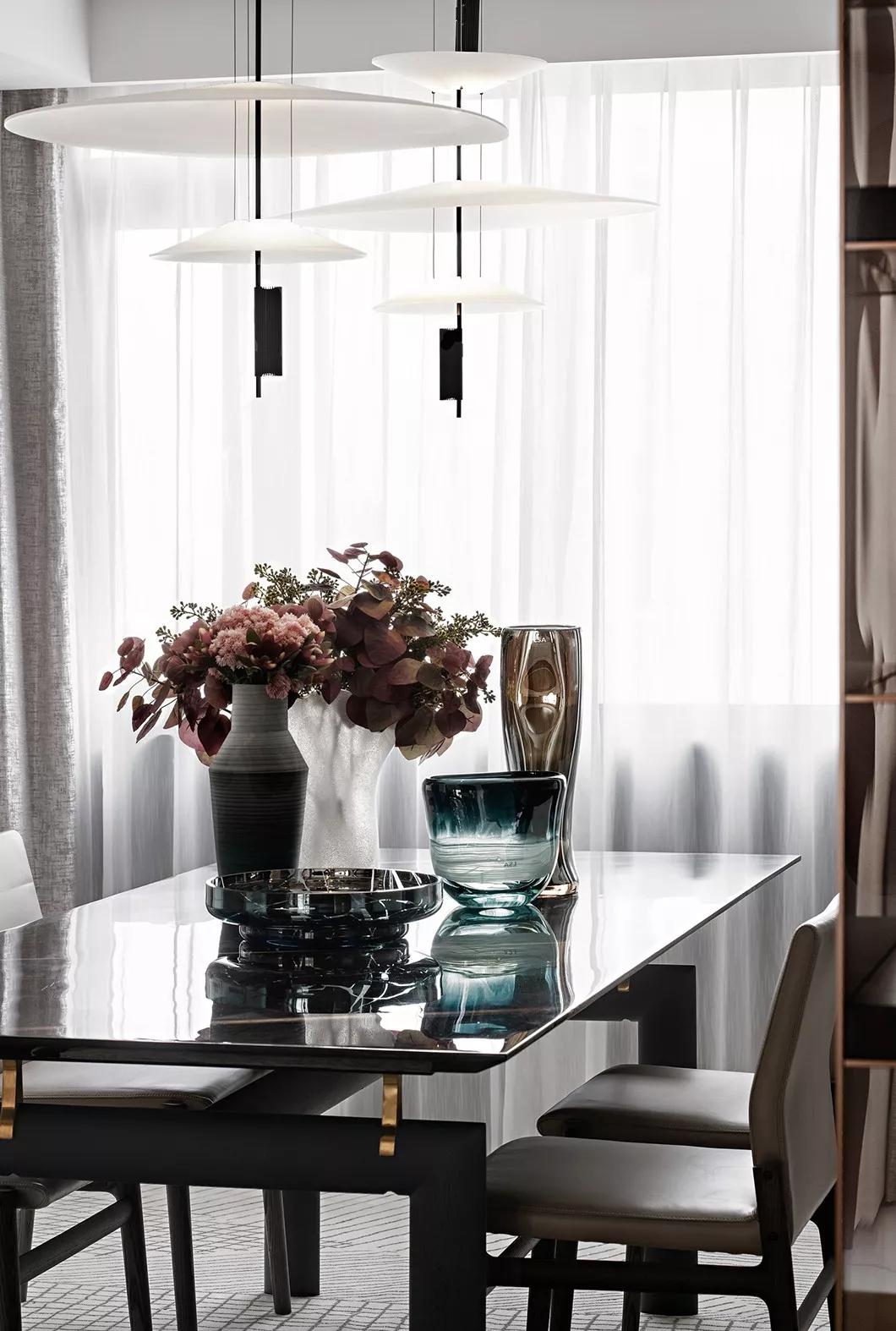 空间以灰色调作为主调性,让整个空间显得沉稳,宁静,彰显奢华气度。进口浅米色编织地毯均匀了室内的暗色,让空间在庄严中透露出舒适的空隙,为客厅留出一方闲适之逸。