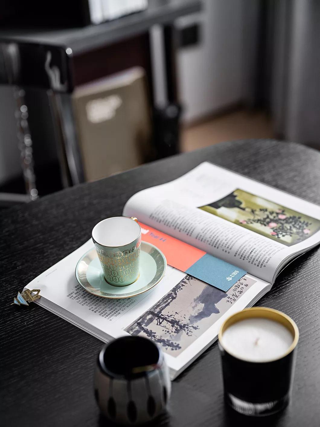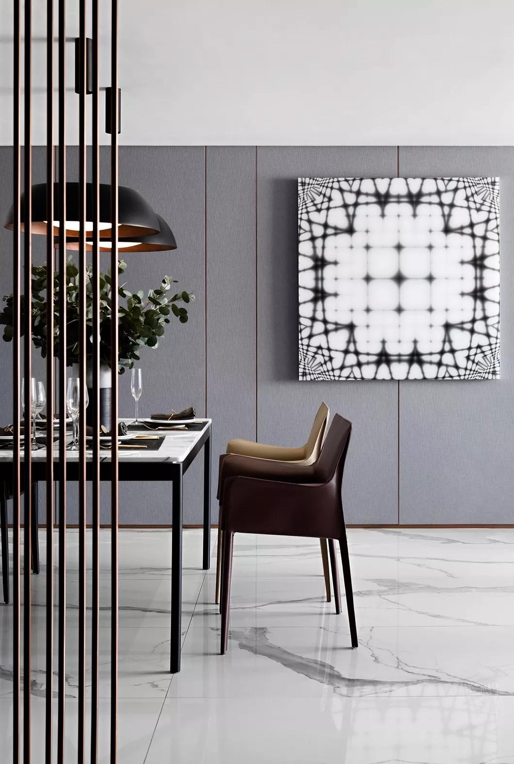 空间中的艺术元素不仅反映在手工地毯、餐厅餐椅的形式及装饰品上,更体现在室内任何一个细节中,体现出业主从事艺术拍卖行业的特点和高雅品味,亦都能看到在艺术家Rob Pepper的作品色彩元素,完美地呈现了文化感十足的现代时尚住宅。