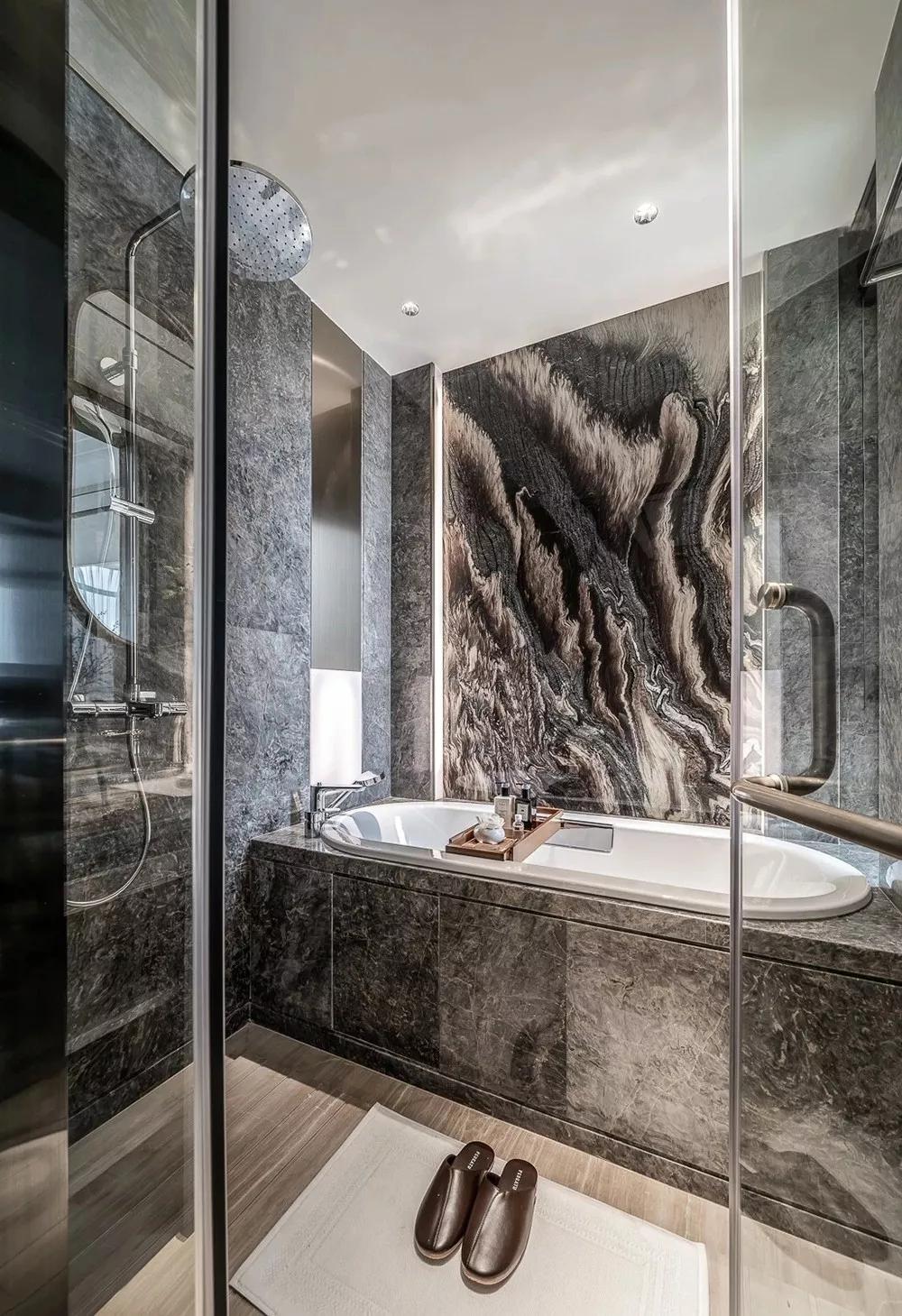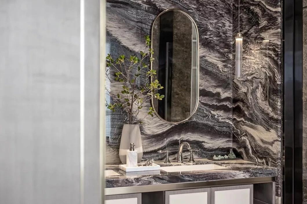 洗手间大气恢弘的背景墙,碰撞出空间深邃静雅的氛围,在细节处彰显豪宅之尊贵。