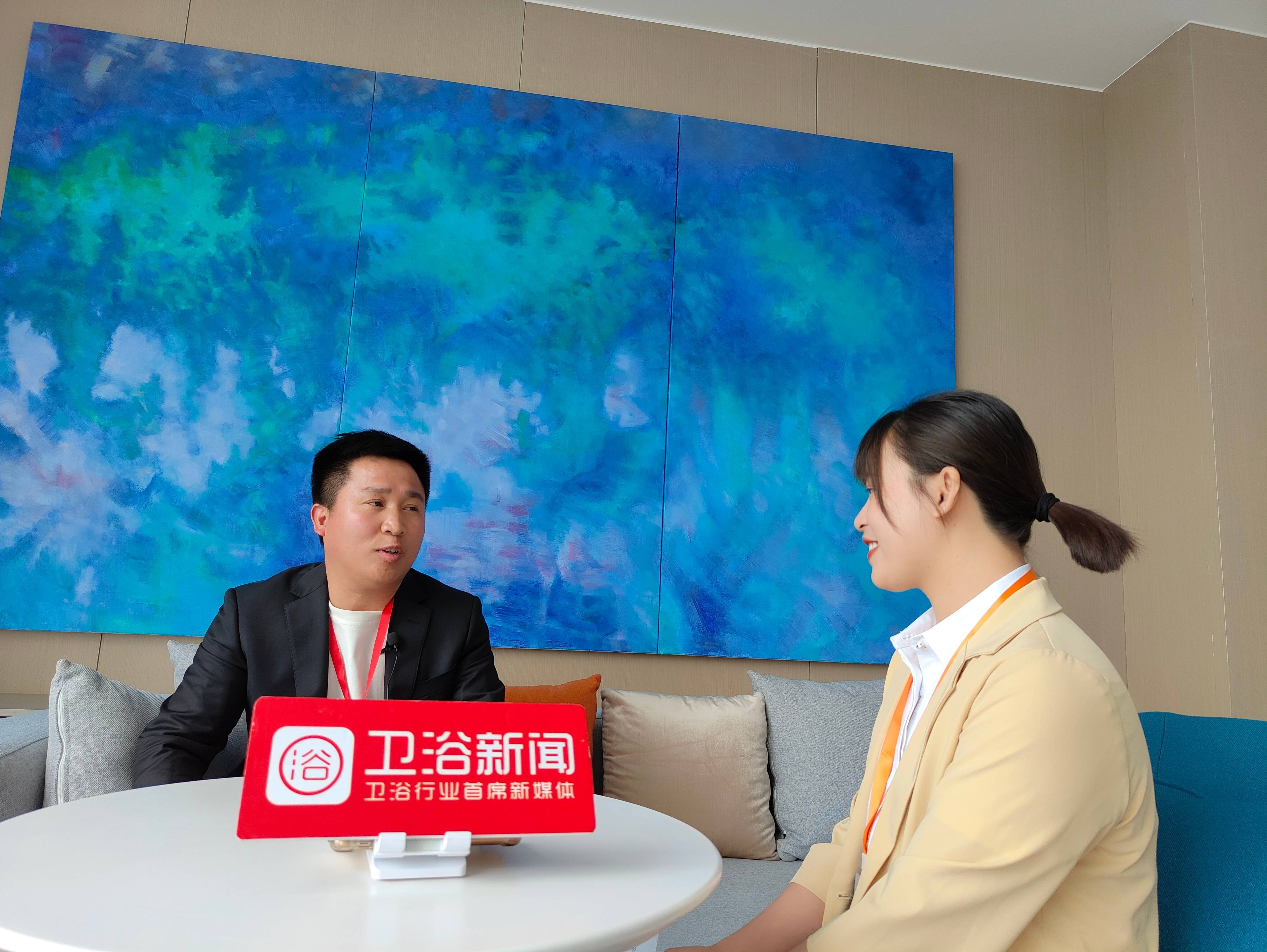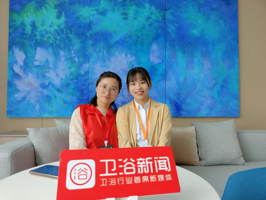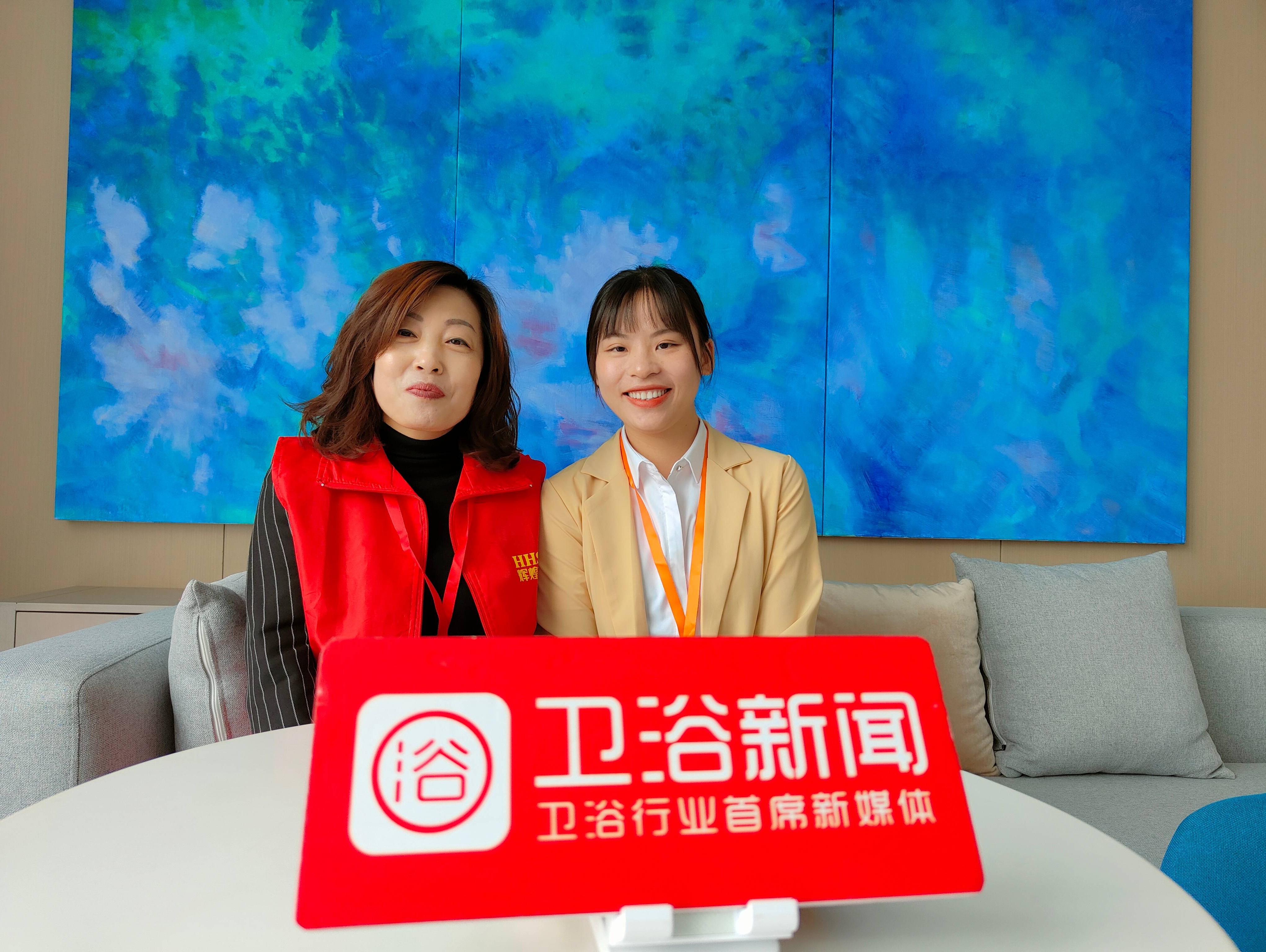 左为辉煌卫浴安徽蒙城经销商张长飞,右为卫浴新闻记者紫薇