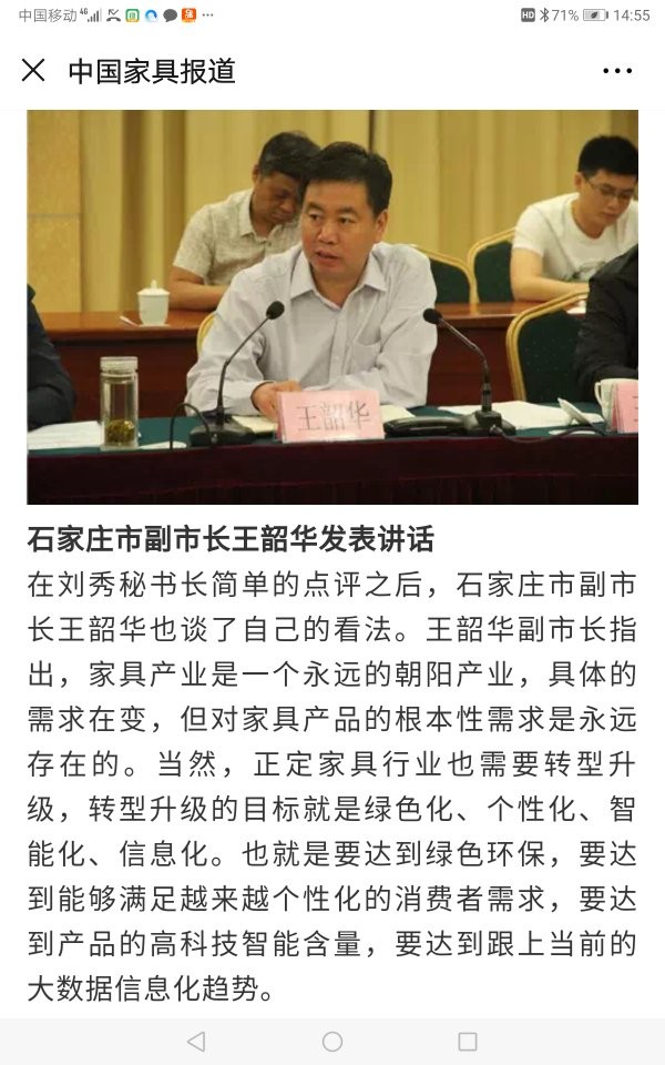 这是市长,带领记者,和各部门的领导,多次走进我博尼维尔家具厂指导工作