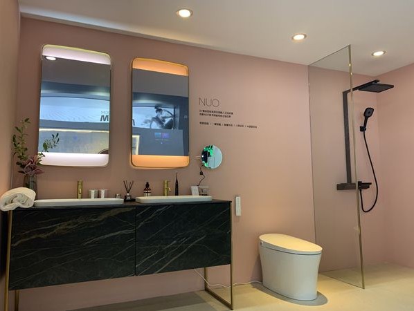 HDE7001T智能马桶,全新轻奢系列浴室柜、SMC材质装配式阳台柜等产品受到客商关注和好评,也受到了众多媒体的关注。