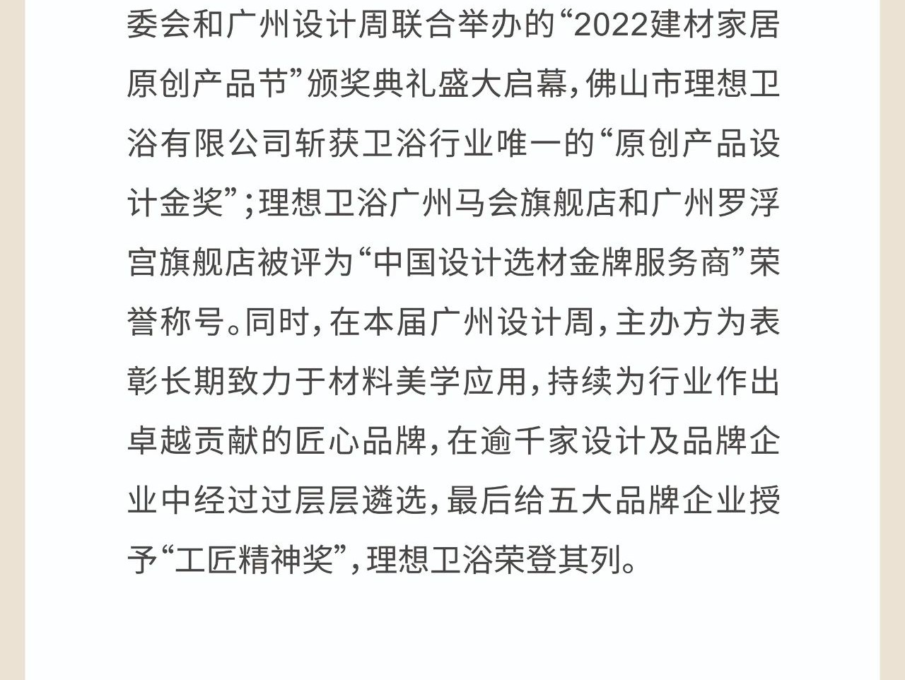 这是理想卫浴连续两年荣获此殊荣。据中洁网有关负责人介绍,2021年度沸腾质量奖测评活动自去年3月开始启动,历时近一年,共有200余家国际国内主流家居品牌的500余款产品参与,沸腾质量金奖代表了该品类当前质量风向标。