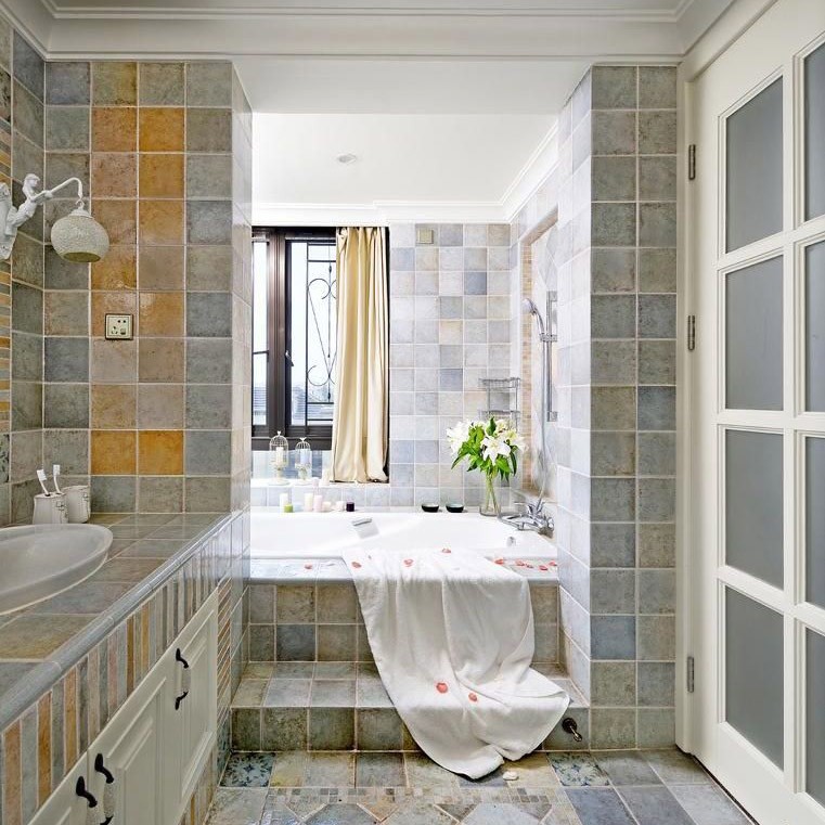 4.价廉物美的国产瓷砖小卫生间的墙地面装修不必太过讲究,进口的高档瓷砖花费大,在小空间中又不易产生强烈的美感效果,倒不如使用几十元一平米的国产瓷砖。比如花开富贵的釉面光亮的艳色花砖,采用国际流行的20times;20厘米尺寸,而且表面凸凹不平,在灯光映衬下有种层次分明的光泽,显得空间大而亮。