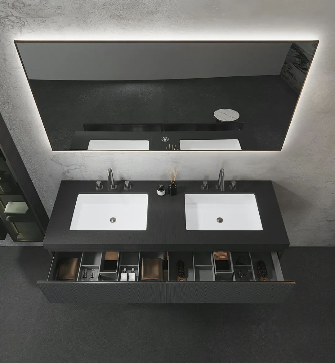 城市新贵开始用暗调、酷感与柔光来修辞生活。而这款宽邸,则是榫卯浴室柜中的特立独行者。极简是他的辨识度,一酷到底更是他的存在哲学。