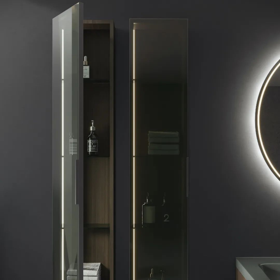 百世和木从“极简储物”出发,根据空间场景整体企划,在合理的位置,进行龙头、马桶、花洒、壁龛、甚至洗烘柜入墙,不仅能增大空间,同时也能保证储物,更让墙面精简,富有层次之美与点睛艺术。