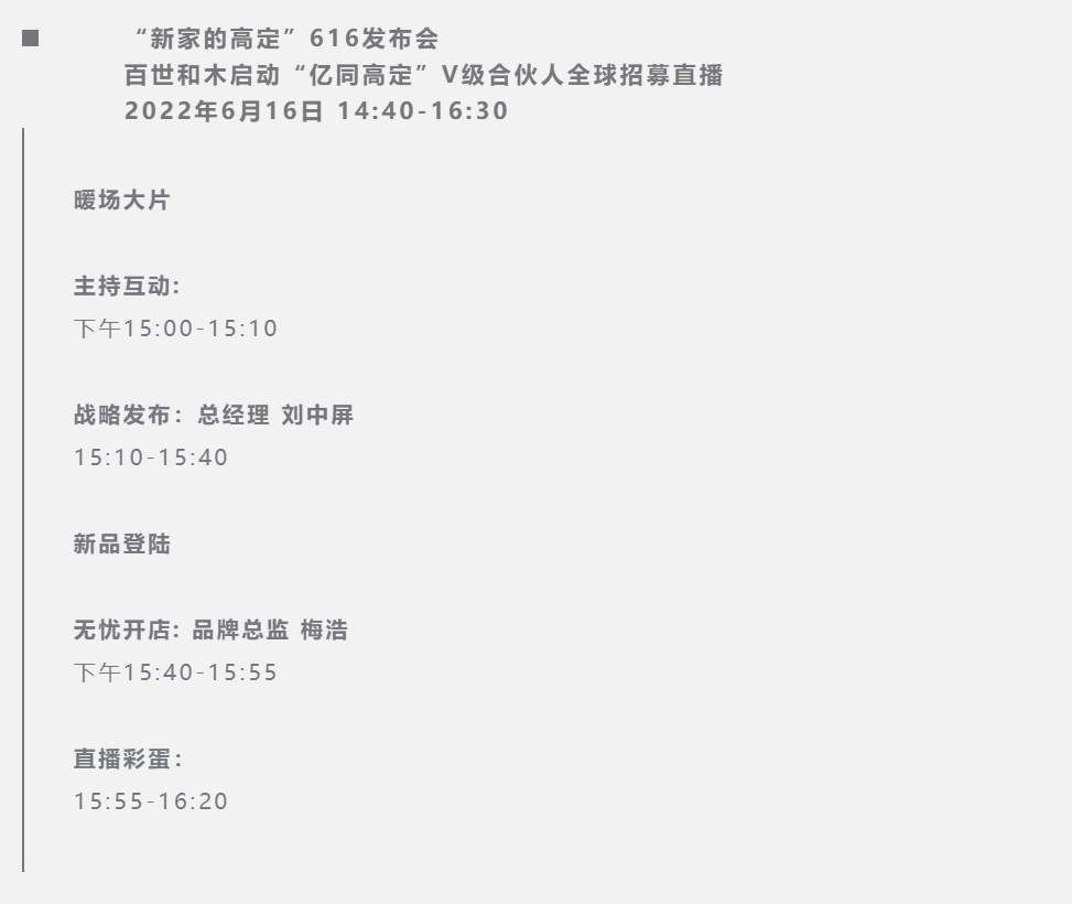 2022年,中国浴室柜行业,最具里程碑意义的一次新品发布会——H-WOOD百世和木启动V级市场招商,V+高定,V品战略,交付创新等重磅发布,开辟全新赛道、助力大商崛起、推动行业进步。