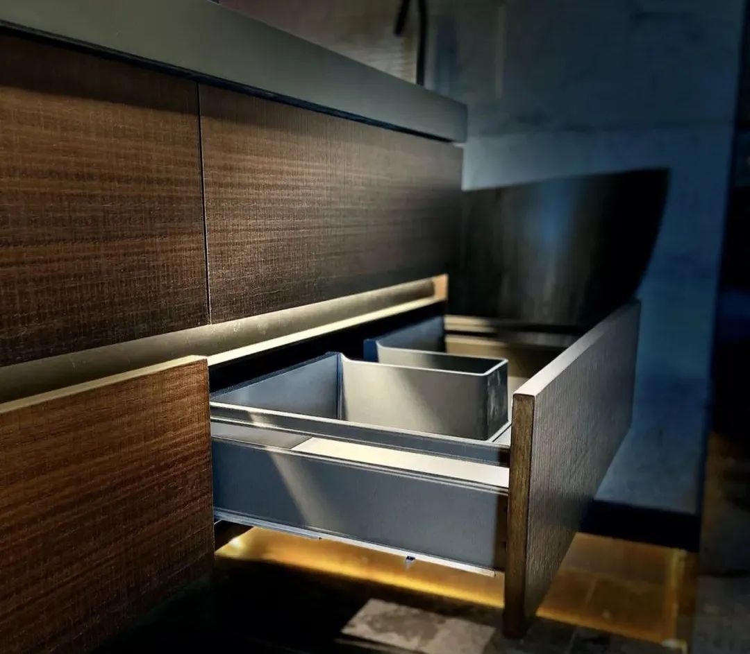【布光设计】大镜环绕式发光、抽屉开合感应式内发光,边柜嵌入式开合发光,形成丰富饱满的氛围灯光。感应式照明非常人性化。亮起的不是灯光,而是生活灵感。