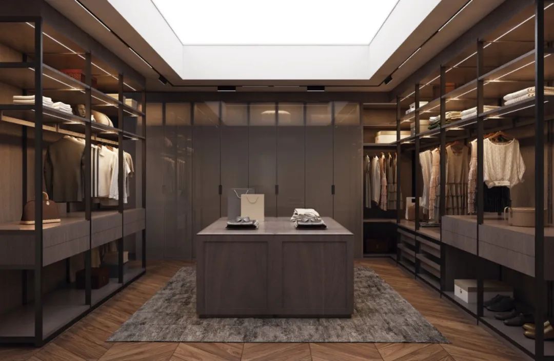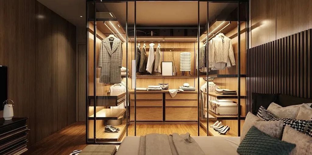原木皮草提升整柜的时尚感,智慧照明提升使用的氛围感。这样的衣橱,更提升了衣物的精品感、生活的精致感。