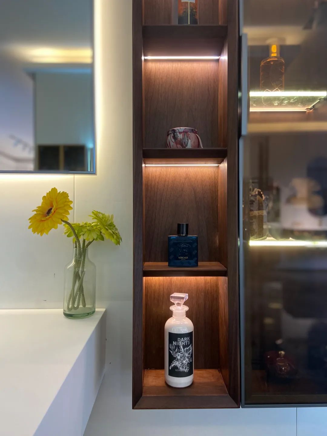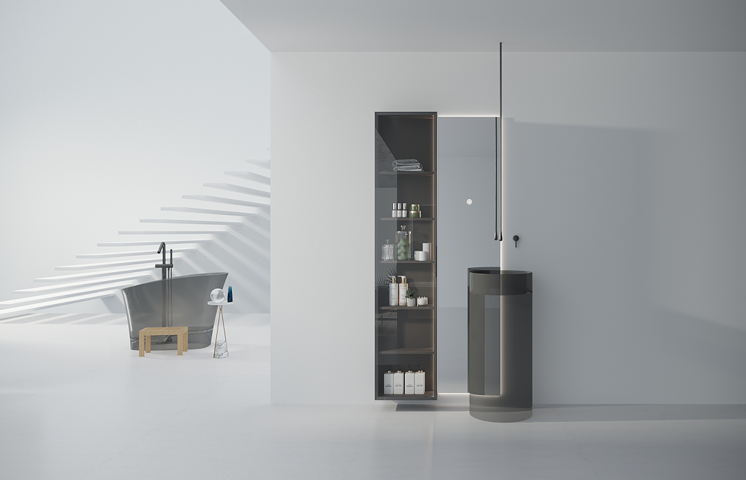 由于掌握全品类的自主“研发-设计-搭配”生产链,百世和木做到不断打破传统卫浴空间设计,既能打造围绕“洗漱-沐浴-洗烘-衣橱”的完整高定空间,又能通过柱盆、吊柜、入墙式龙头花洒壁龛、落地浴缸等,形成五脏俱全的迷你高定场景,处处精工巧思,让空间享受最大化、空间价值最大化。