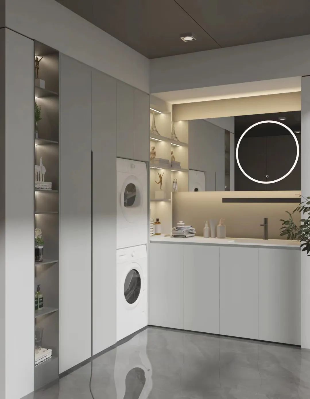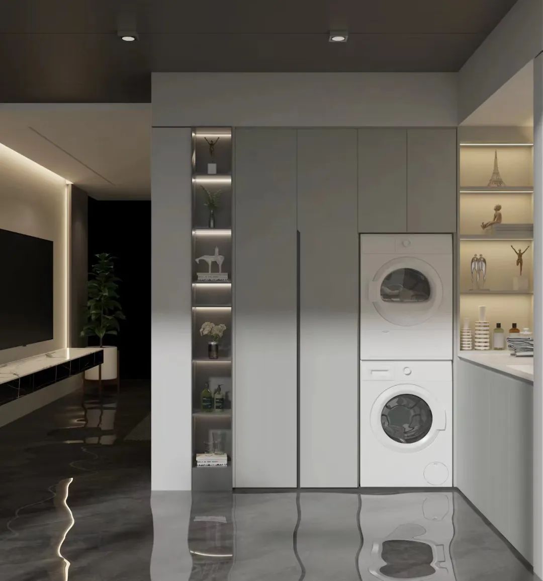 极简里的“入墙式”更驱动着品牌不断创新:从入墙式精品龙头、入墙式精工壁龛,再到入墙式洗烘台柜,特别是后者,极大提升了空间的颜值、宽敞与舒适。