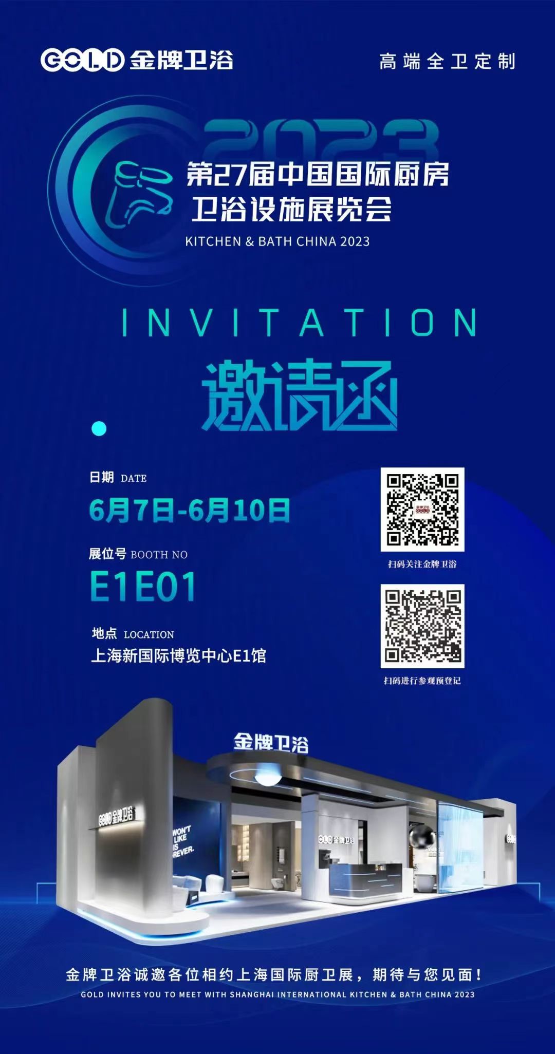 6月7日-10日,被誉为卫浴行业“晴雨表”和“风向标”的上海厨卫展将在上海新国际博览中心举办。作为疫情结束后的第一场超级大展,本届展会受到前所未有的关注和期待,金牌卫浴也将携旗下新品隆重亮相,并以全新技术和前沿解决方案,为观众解锁“生活新方式”。