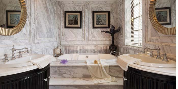 如果家里有两个卫生间,而主卫的空间又足够大,建议你装个双人浴缸,和情人沐浴的感觉特别浪漫温馨。
