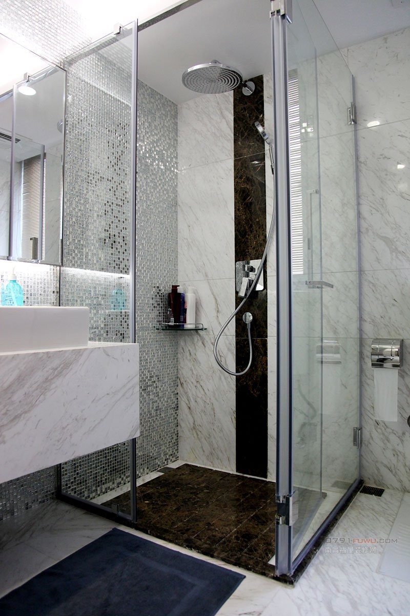 现代家居对卫浴设施的要求越来越高,许多家庭都希望有一个独立的洗浴空间,但由于居室卫生空间有限,只能把洗浴设施与卫生洁具置于一室。淋浴房充分利用室内一角,用围栏将淋浴范围清晰地划分出来,形成相对独立的洗浴空间。