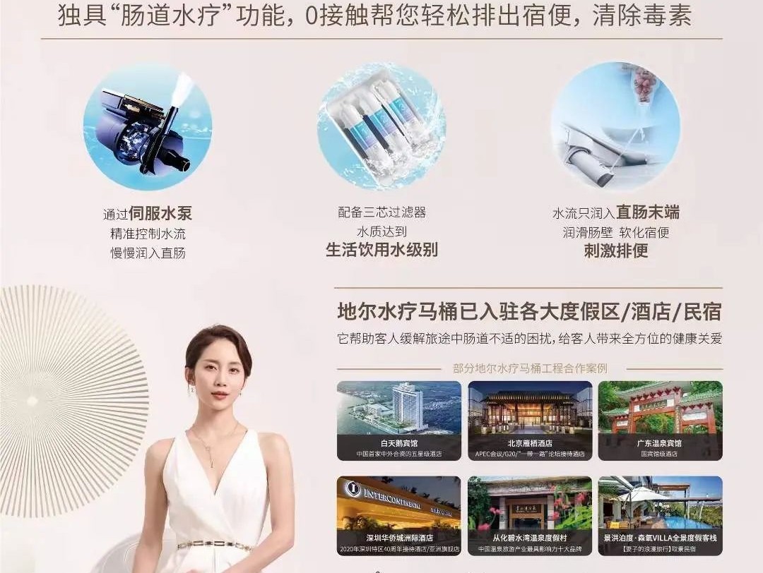 在新的消费趋势下,地尔健康一直在围绕高端和健康方向去做产品,与主流消费人群形成价值观的共振。地尔健康关注“肠道健康”,专注于智能马桶17年,拥有“零接触肠道水疗”独家技术专利,能够深度清洁肠道末端,带动人体机能正向调整,为用户提供最舒适的冲洗效果。其差异化的功能,不仅广受高端用户的认可,还得到高端酒店、月子中心等高端场所客户的青睐,已成为经销商开拓高端市场的利器。