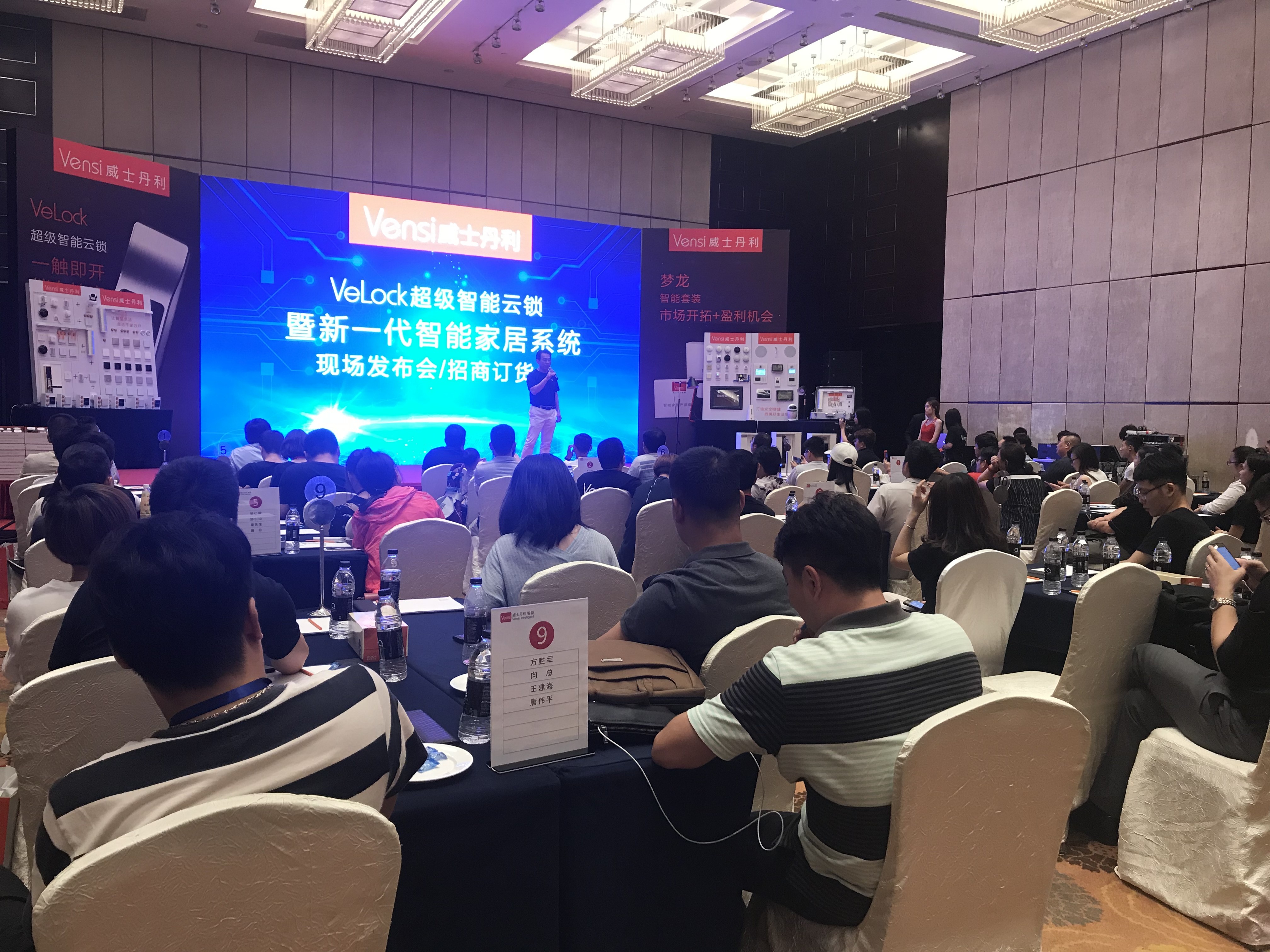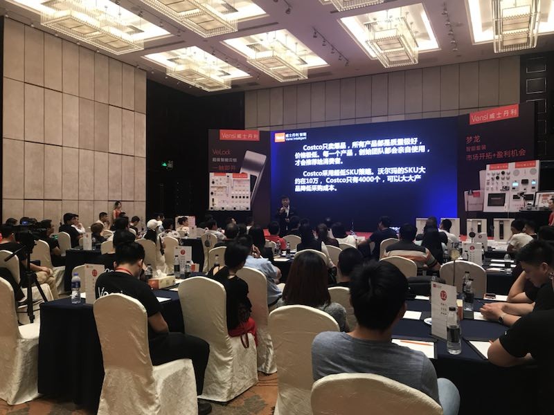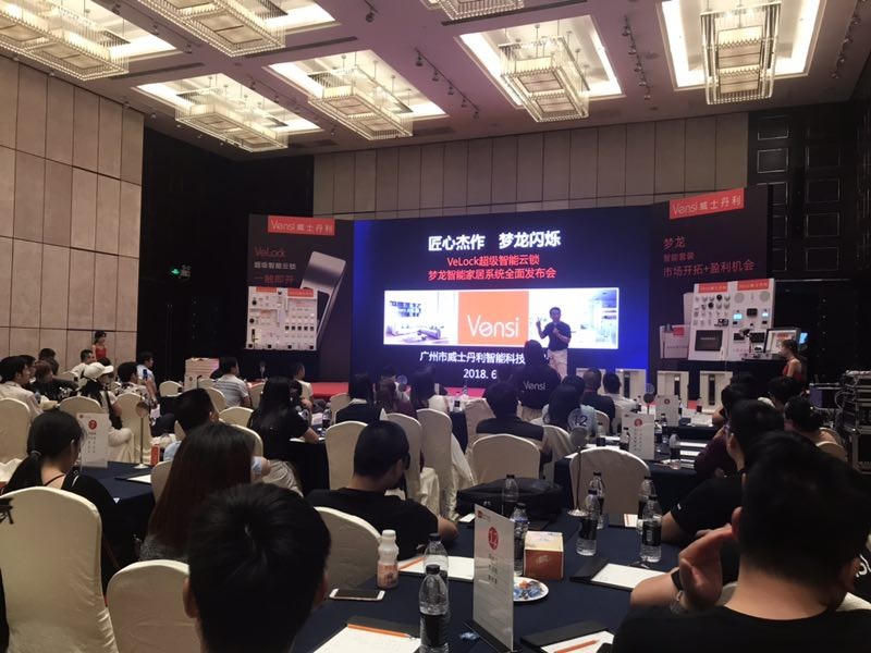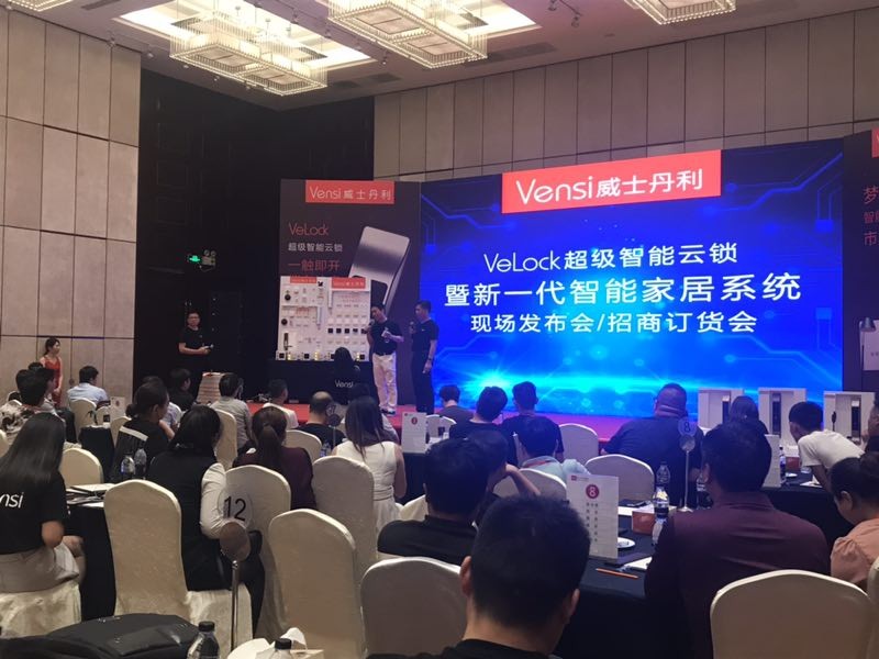 Vensi威士丹利超级智能云锁暨新一代智能家居系统现场发布会正式举行,威斯丹利的陈董首先发表致辞,向所有参与此次发布会的媒体和经销商们介绍了Velock超级智能云锁这款产品,指出其领先于国内的“无拉手、人脸识别、防黑客、128位密码保护”等八重保险设计,是开拓智能家居市场的利器。Velock超级智能云锁的设计研发只为了给所有的用户提供更加安全、便捷的美好生活空间。