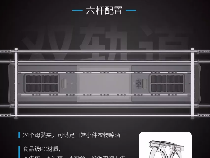 其率先采用的真正超外差无线遥控技术,搭配超静音交流管状电机,实现了晾衣过程的轻松操控。用户只需通过遥控器,就能精准控制晾衣杆的升降,彻底摆脱了传统手摇晾衣架的繁琐与不便。同时,晾霸还在风干烘干技术上取得了重大突破。其多核贯流风机对流风干系统,结合 3 小时定时关闭的环保设计,不仅能快速风干衣物,还能有效节省能源,降低对衣物的损伤。而光波臭氧双管齐下的杀菌消毒技术,30 分钟定时关闭功能,更是在保障衣物洁净无菌的同时,充分考虑到了人体健康与安全,避免了传统消毒液杀菌方式的诸多弊端。