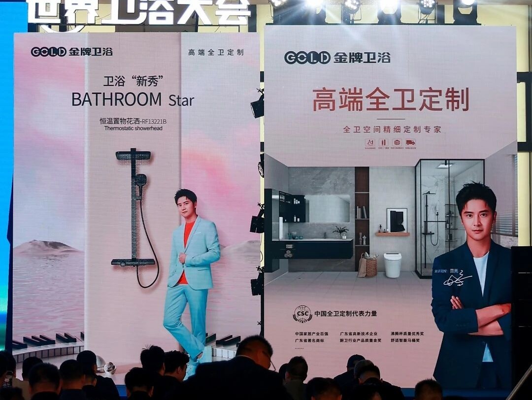 在面临严重竞争的市场环境下,金牌卫浴在营销上重拳出击。从年初开始,金牌卫浴几乎每个月都会举办营销大会,如抖音本地生活核心经销商培训会、新商先锋特训营、半年度冲刺动员大会、秋季新品发布会、华中区域交流会、云贵省联动会议等;同时,金牌卫浴还高调亮相深圳家具展、上海厨卫展、第136届广交会等国际大展;为了抢夺“以旧换新”市场,又参加了政府“以旧换新”国补政策,并推出“金牌快装”服务。