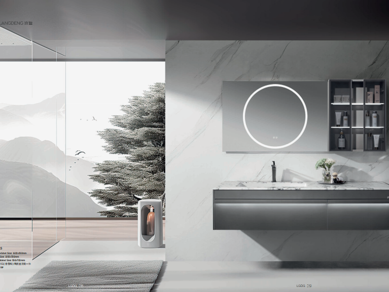 镜柜的设计也别具一格,不仅提供了充足的储物空间,还配备了智能照明系统和除雾功能,光线柔和均匀,能有效去除镜面雾气,为用户提供了清晰明亮的梳妆环境。此外,浪登还注重人体工程学原理,浴室柜的高度和深度经过精心设计,使用起来更加舒适便捷,有效减轻了用户的疲劳感。