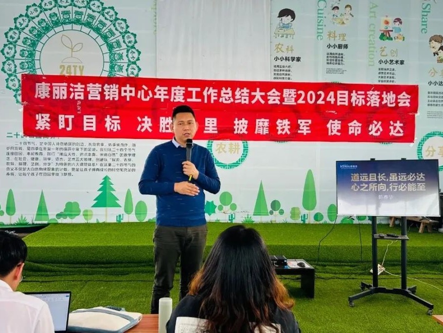 康丽洁玉林运营中心黄总携运营团队登台致辞,通过"三大维度战略部署"系统阐释区域发展规划:以用户价值为核心构建品牌护城河,依托数字化工具赋能终端运营,创新帮扶模式打造差异化竞争力。