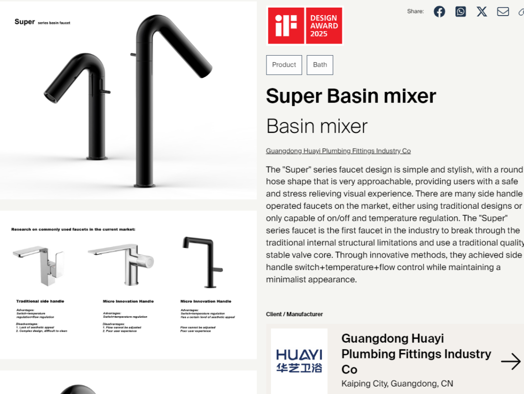 在产品层面,华艺卫浴的表现同样可圈可点。在消费升级的大趋势下,消费者对卫浴产品的需求,不再局限于基本功能,而是更注重个性化、智能化与美学价值体验。华艺卫浴坚持以用户为导向的差异化研发策略,推出了全卫系列新品,深度融合科技、设计与生活。比如,能“泡”咖啡的咖啡龙头系列,为追求品质生活的消费者带来全新体验;获得2025德国IF设计奖的"极"系列面盆龙头,将产品尺寸做到极致。通过持续更新迭代,华艺卫浴完美契合消费升级趋势,并以丰富的产品品类为依托,打出了有力的产品组合拳,牢牢抓住不同需求的消费者,从而精准收割市场。