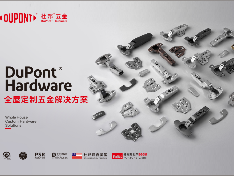 如今,杜邦已布局6大品类产品线,包括铰链系列、导轨系列、弹开器系列、柜门支撑系列、骑马抽系列、智能锁系列,可以全方位、全场景满足家居卫浴五金需求。