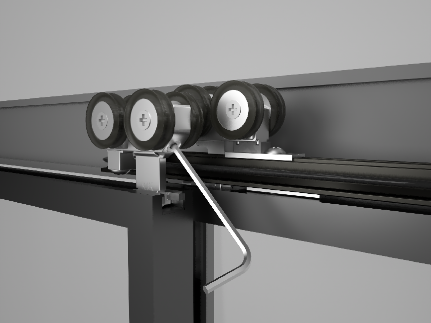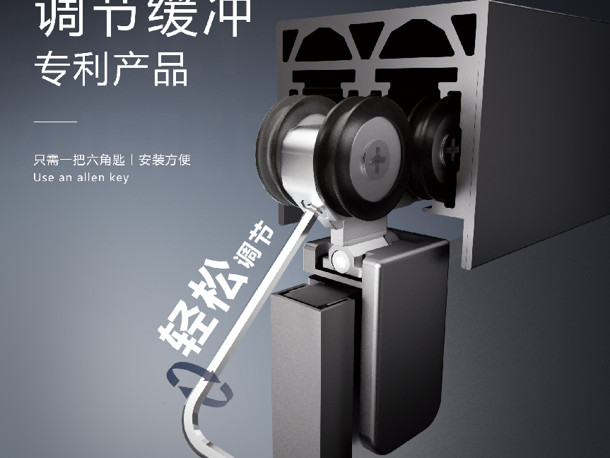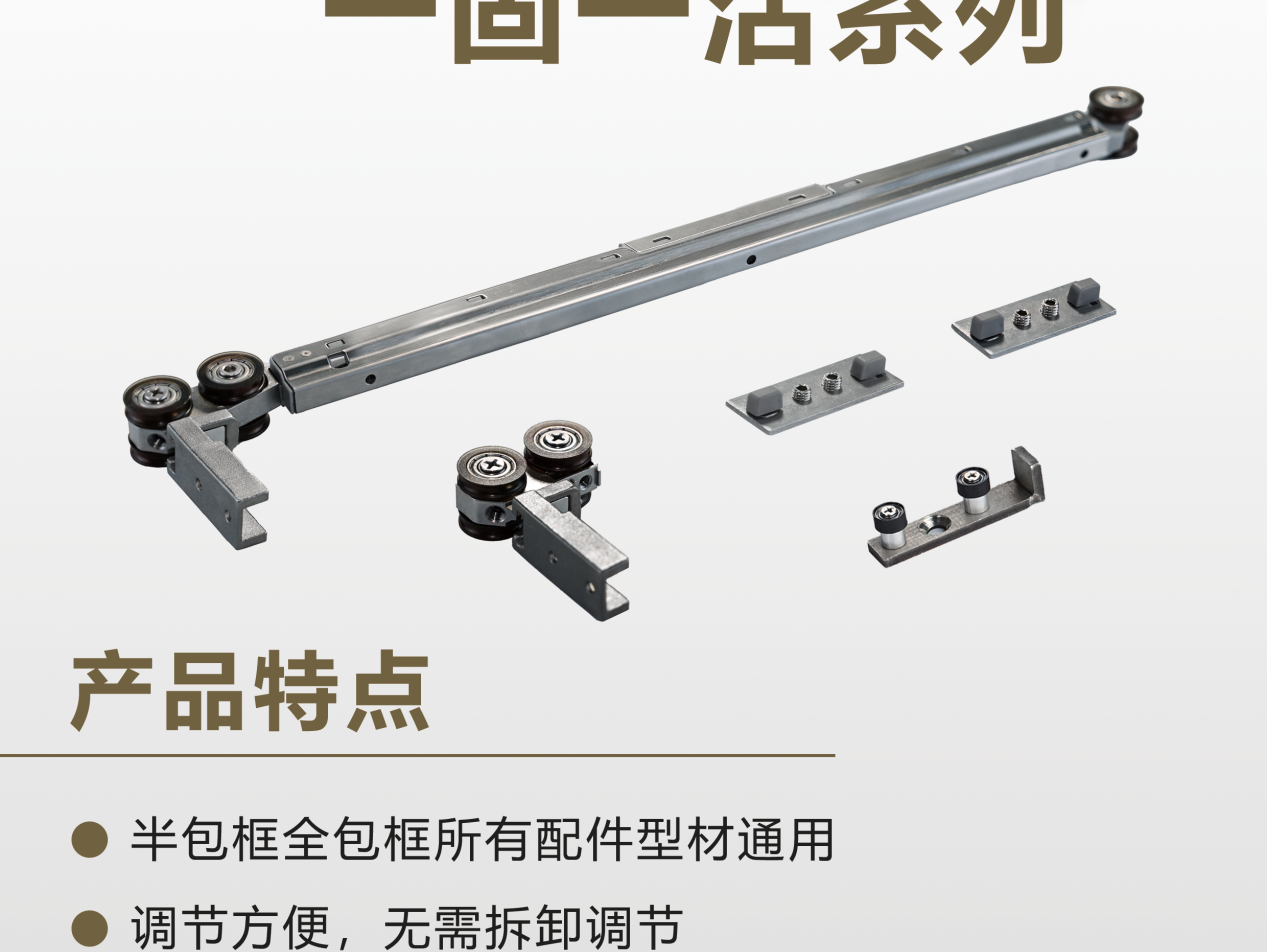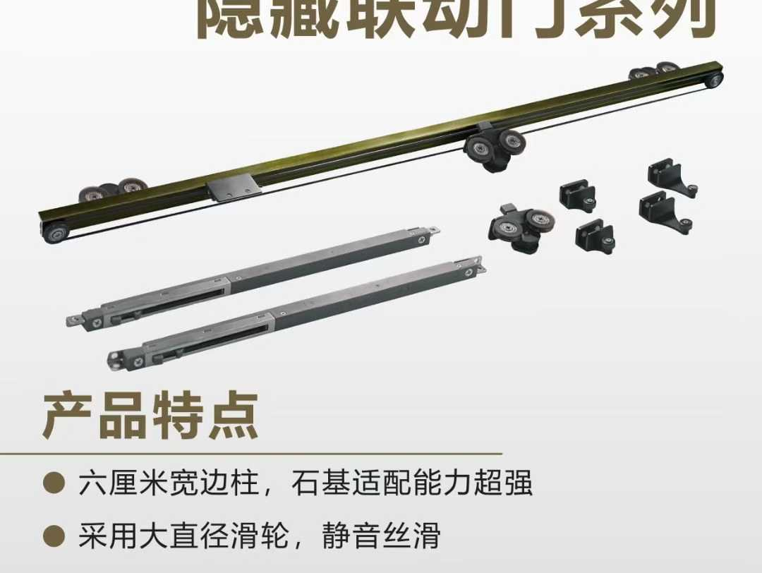 而专利产品星光五号,专为隐藏联动门设计,采用六厘米宽边柱石基,适配能力超强,将易损件后置,让更换维修也无忧;下导向轮组构,彻底消除了玻璃门推拉产生的晃动。