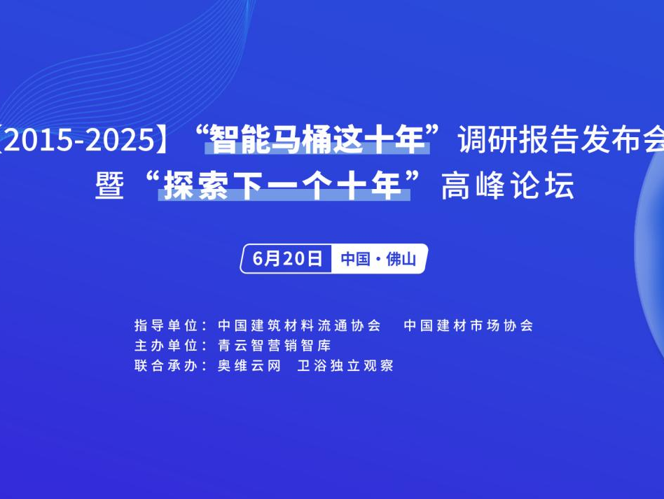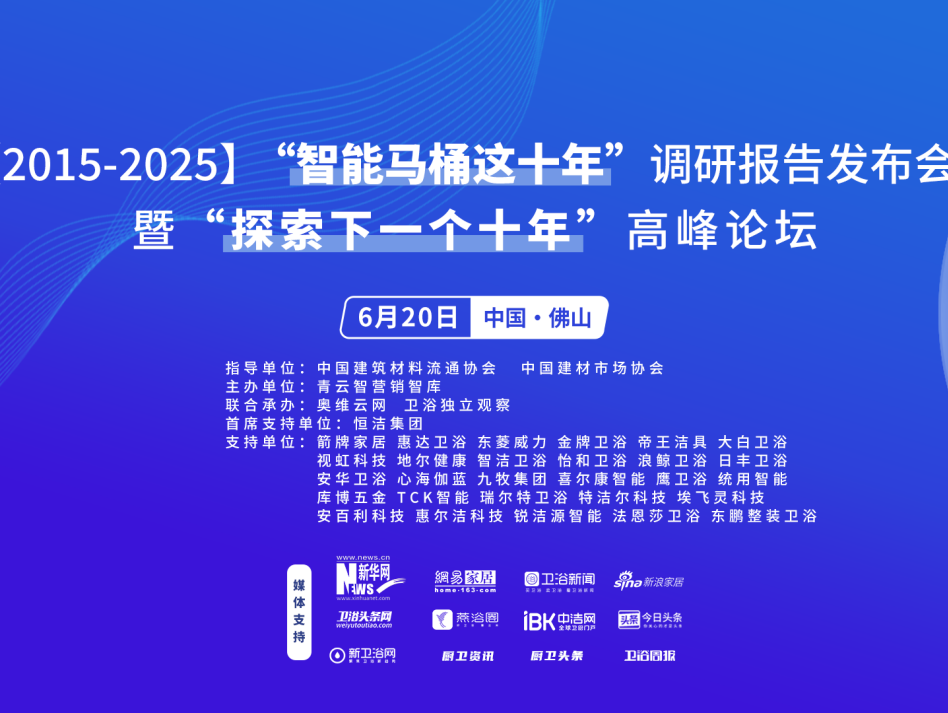 6 月 20 日,《2015 - 2025 “智能马桶这十年” 调研报告》发布会暨 “探索下一个十年” 高峰论坛在佛山石湾公园・希乐曼艺术中心举行。