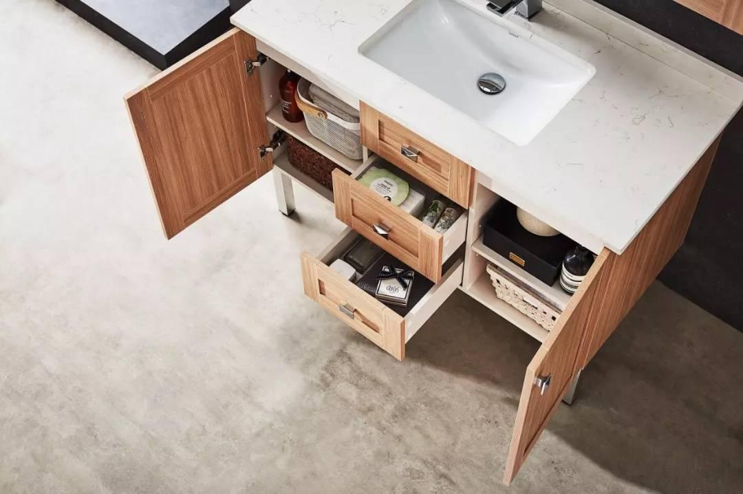 对于在繁忙都市中谋生的人来说,每天都过着快节奏的生活,几乎永远都是“在路上”,“分秒必争”更是常态!在卫浴间安装浴室柜,可以根据自己的生活习惯来摆放物品,提高生活的效率,不再需要翻箱倒柜的寻找某样东西,营造舒适便利的生活氛围。