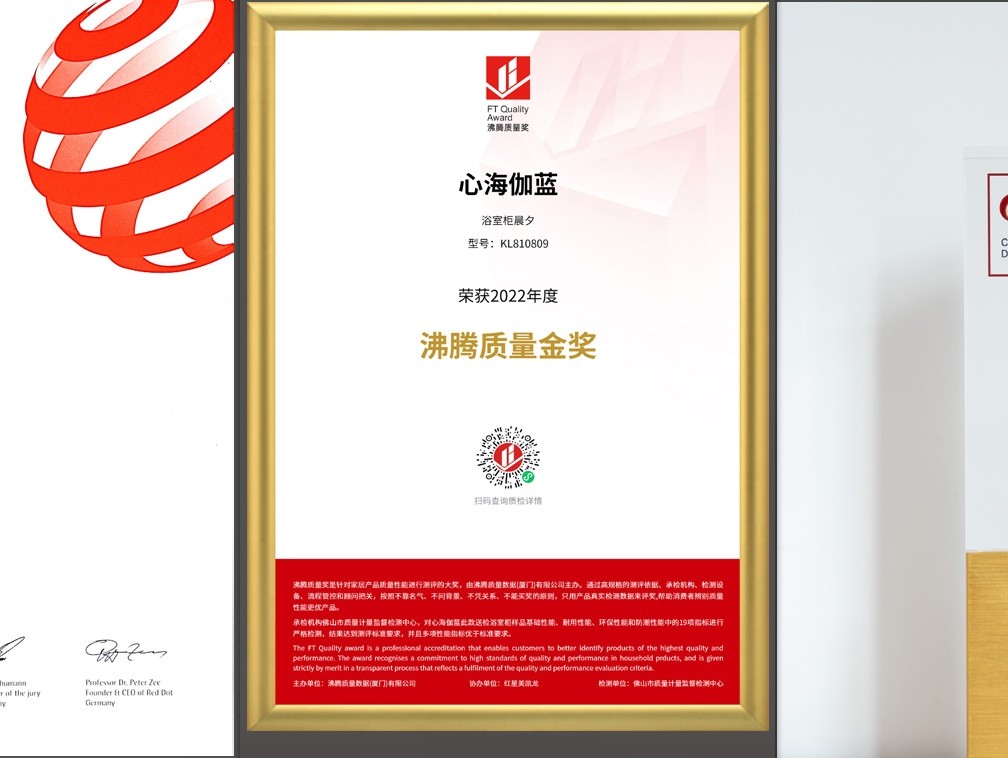 同时,心海伽蓝组建了一个专业设计团队,通过将功能与外观融合创新,将大量新颖时尚、兼具实用价值的产品推向市场。此举,不仅收获了大量消费者认可,还屡获红棉中国设计奖、沸腾质量金奖、金像奖、德国红点奖、国际CMF设计奖等设计与质量大奖,并被评为国家高新技术企业和广东省名牌产品。