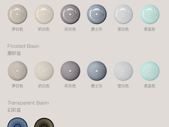 表现在2025B系列浴室柜上,光是拉手包覆,就可以提供5种颜色进行选择,包括木纹色2种(柚木色、原木纹)、金属色2种(镍拉丝、绅士灰)、纯色1种(笋白色);台盆也有莹白亮光盆、彩色亮光盆、彩色磨砂盆等多种既具时尚气质,又带有高级感的色彩。
