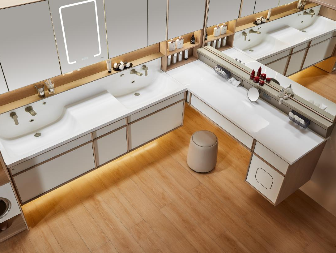 2025B系列浴室柜采用洗妆扮科学三区收纳法,将上柜分为美发用品收纳区、美妆护肤用品收纳区、装扮用品收纳区,让每一件物品都轻松收纳,并各司其职,再也不用担心会被乱放。