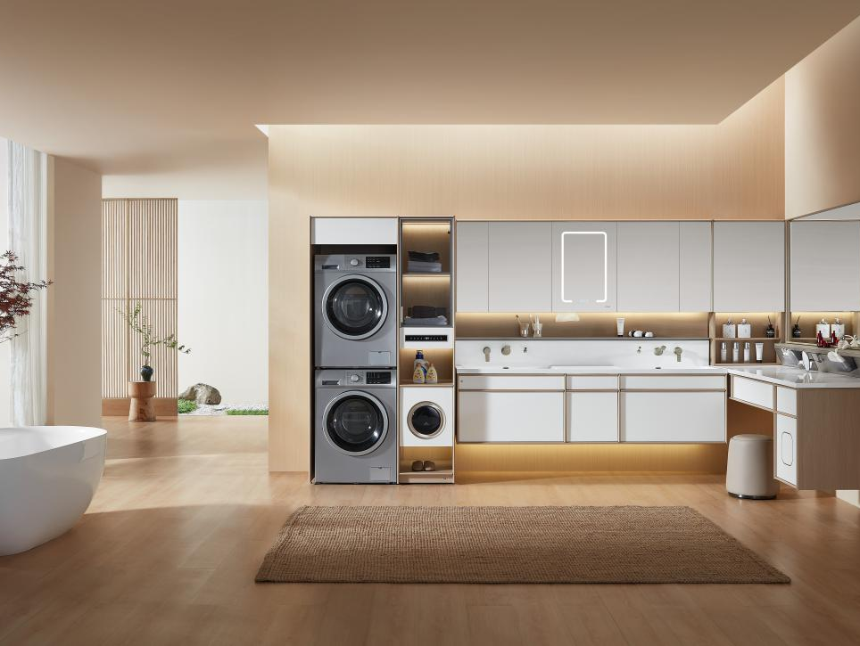 由于浴室比较潮湿,各种洗漱清洁用品放在外面,很容易滋生细菌。在这种情况下,2025B系列浴室柜搭载的抽屉式除湿杀菌柜,无疑非常实用,可以通过除湿杀菌,给家人带来健康呵护。
