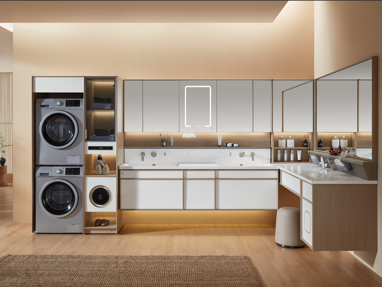 同时,它还有镜柜款、单镜款、多功能置物台的镜柜款三种款型,以及700、800、900、1000、1100、1200mm六种常规型号,并支持自由定制,以满足消费者的个性化需求。