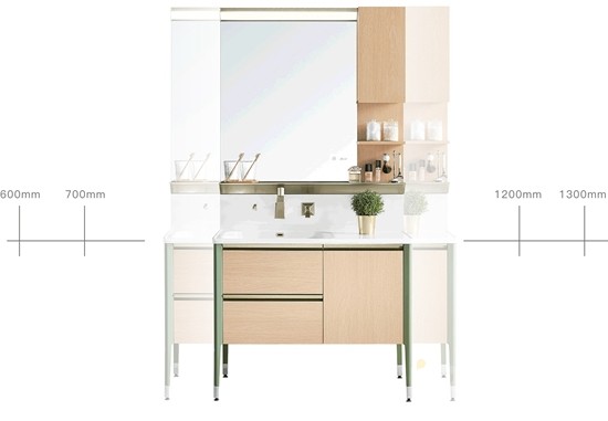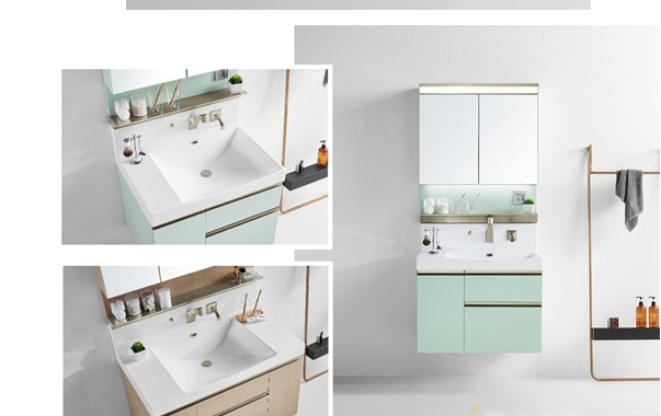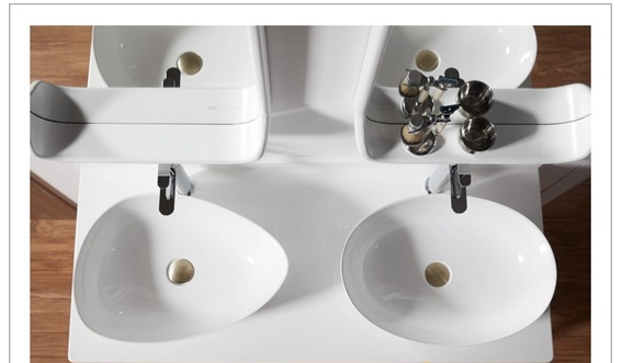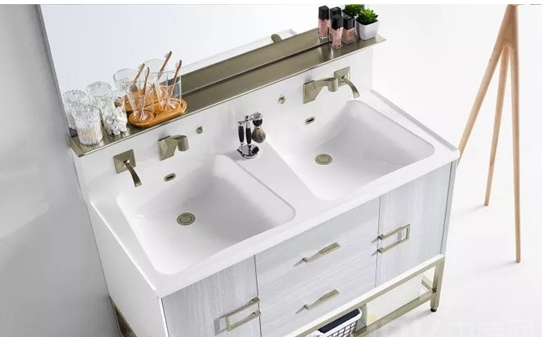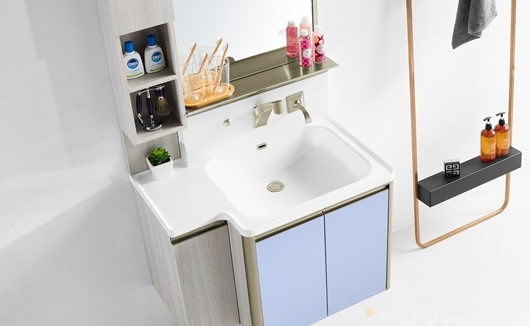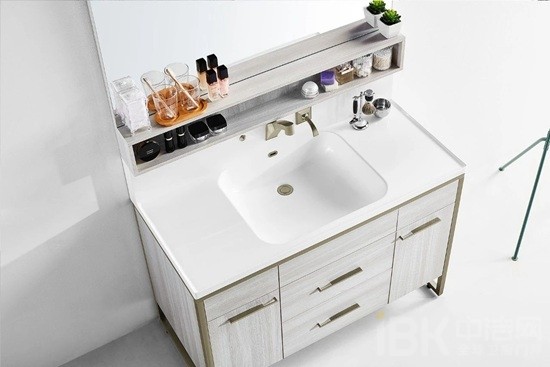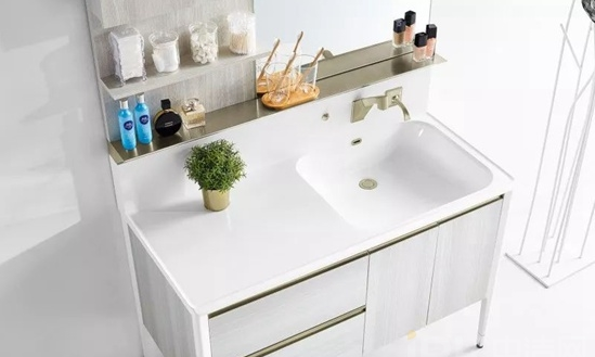 一体式玉晶石台盆,盆心宽大,台面增加置物区域,