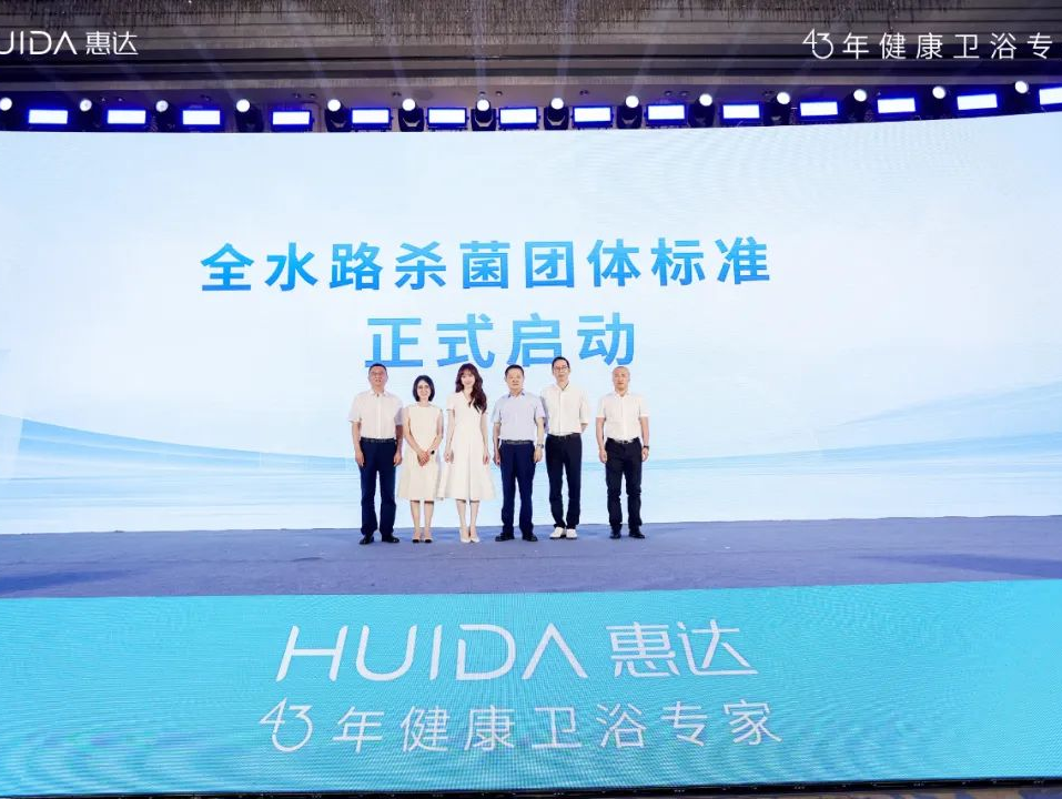 中国家用电器研究院副院长、佳合检测董事长葛丰亮先生向惠达卫浴颁发了深盾S5及S6的“健康安全PLUS认证”。随后,现场嘉宾共同见证了惠达“全水路杀菌”团体标准启动仪式,为产业注入了标准力量。推动标准化建设是企业社会责任的体现,惠达愿与行业同行共同推进中国卫浴由制造走向“智造”、由“标准跟随”迈向“标准输出”。