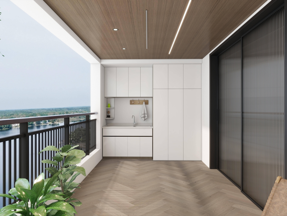 在个性化定制方面,大晟阳台支持从户型、面积到功能、审美的全维度定制。产品表面采用木纹转印、烤漆等工艺,既能精准模仿实木纹理的自然质感,又能呈现纯色极简的现代风格,表现力与可塑性极强。针对不同业主的生活习惯,设计师会量身定制收纳分区、电器集成等细节,比如为有婴儿的家庭设计专门的母婴用品收纳区,为爱好园艺的业主预留工具存放空间,让阳台真正成为贴合生活需求的 “个性化空间”。