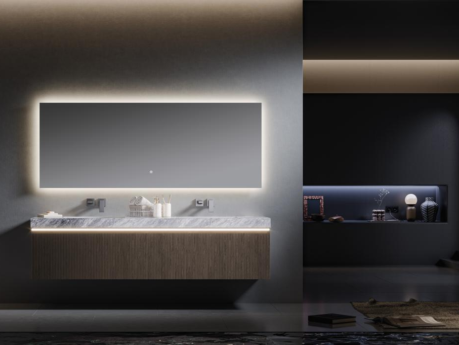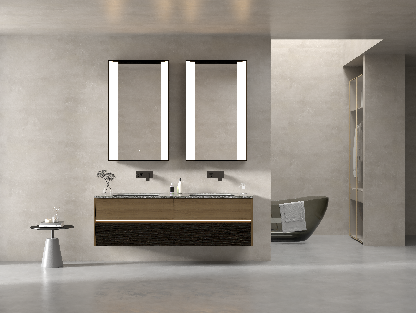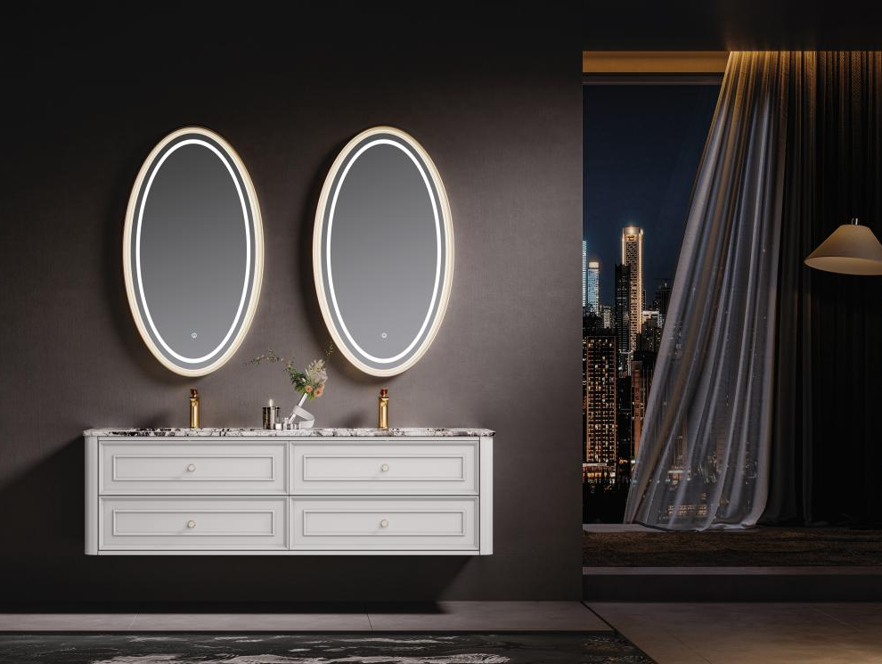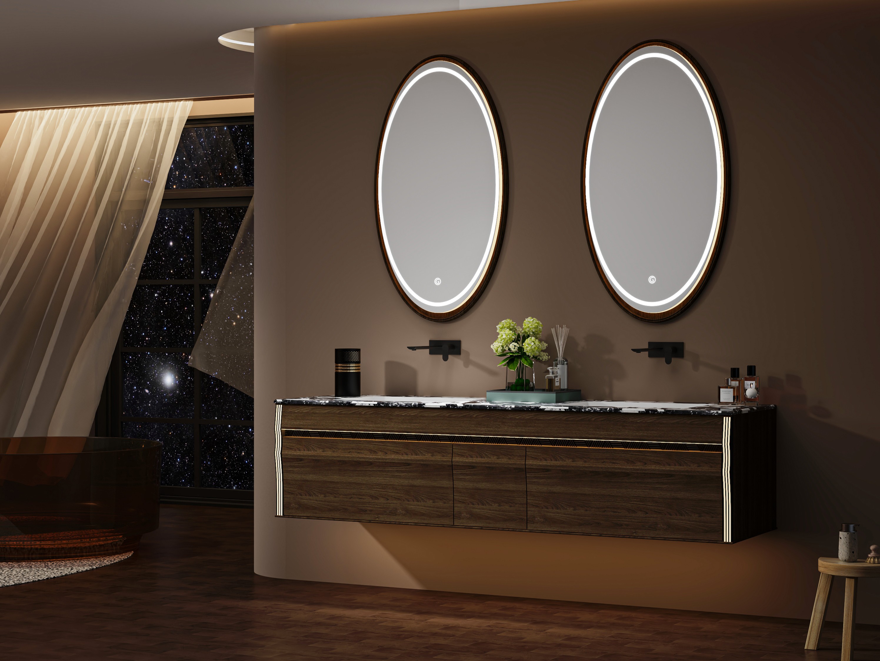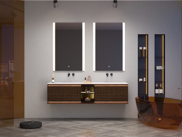 超白玻无铜银镜的运用,提升了镜子的清晰度与美观度。搭配智能调光系统,消费者可根据不同场景与需求,自由调节光线亮度与色温,营造出舒适的氛围。而人性化的收纳设计,充分考虑到消费者日常使用的便利性,合理规划空间,让各类洗漱用品都能找到合适的存放位置,实现了功能与美学的完美统一。