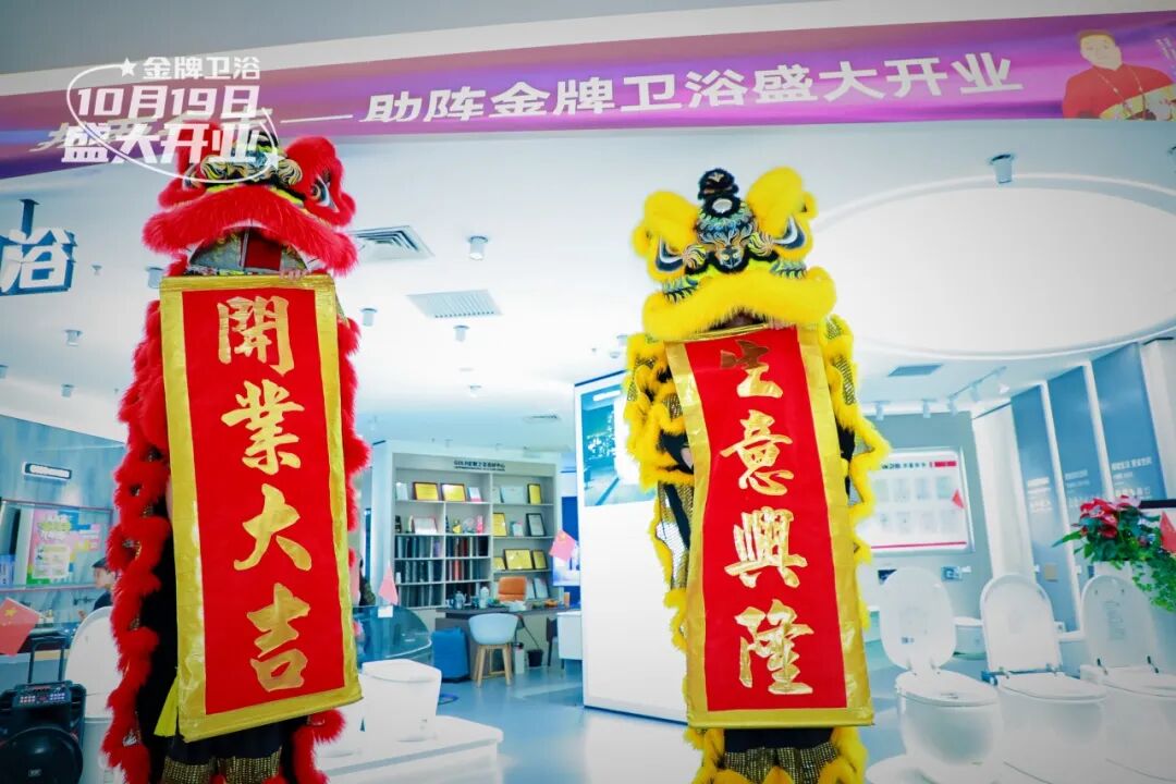 在热烈的氛围中,本次活动的压轴环节——舞狮剪彩仪式隆重举行。金牌卫浴总裁庞湛高携手王娅与扎西多吉和一众领导嘉宾,在门店前共同为新店剪彩。醒狮点睛,祥瑞临门,这不仅标志着成都金牌卫浴旗舰店的正式启航,更寓意着金牌卫浴在西南市场将迎来财富与荣耀的双丰收。